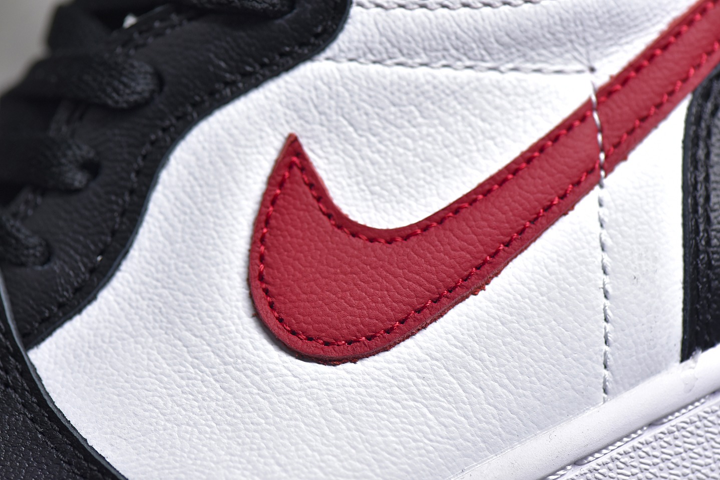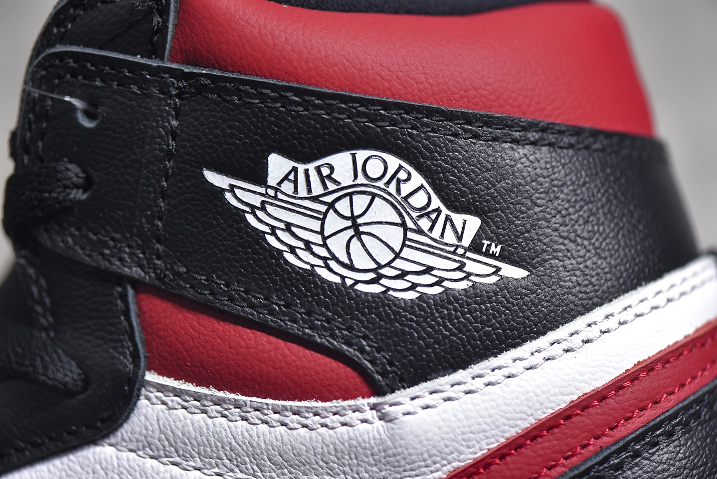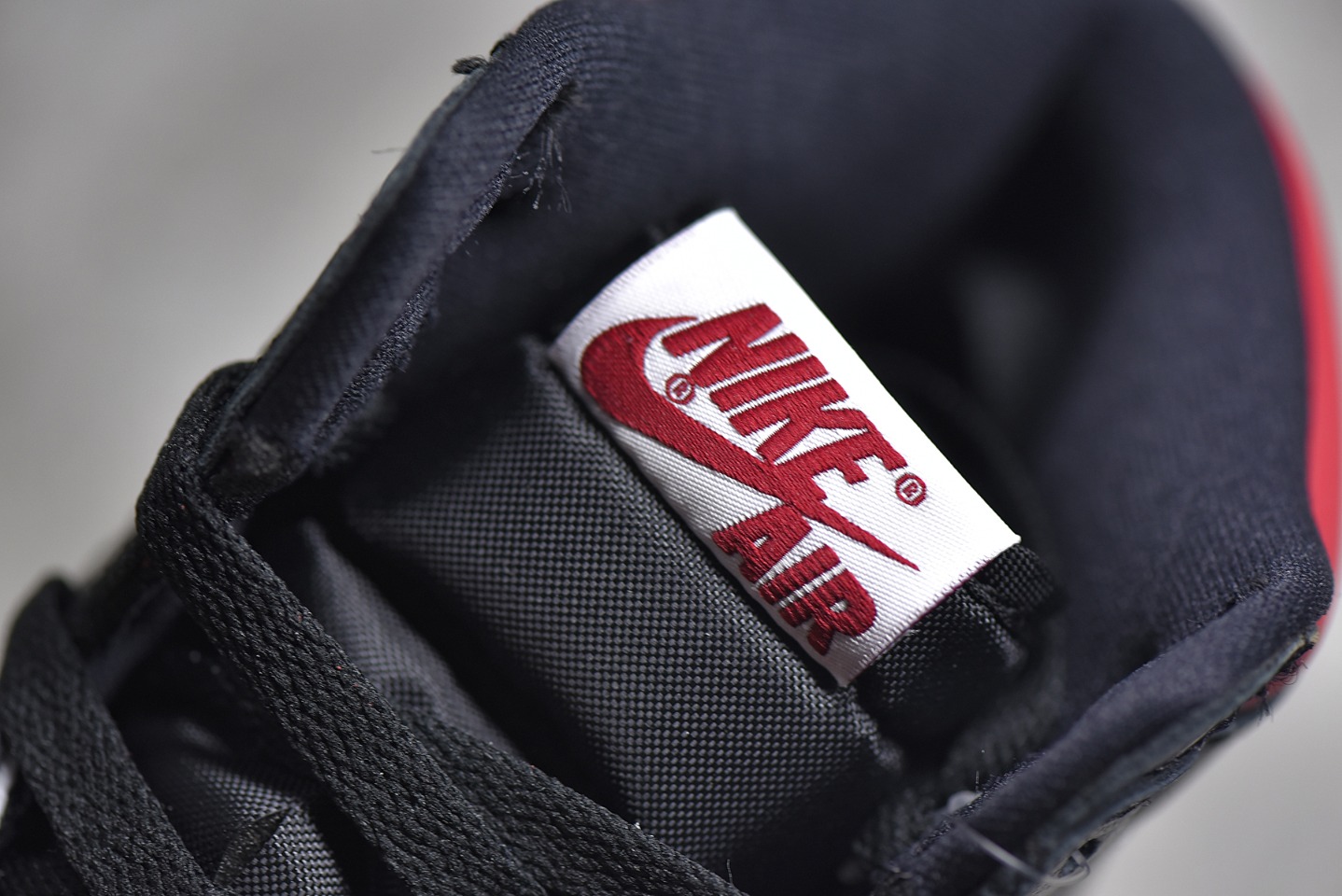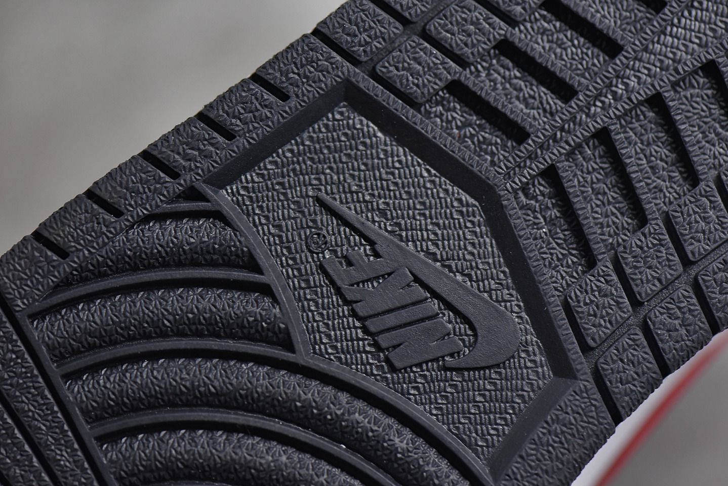 Detailed appraisal of the bottom surface of a product from Dongguan AirJordan 1 Retro High Black Gym Red Red hook black toes