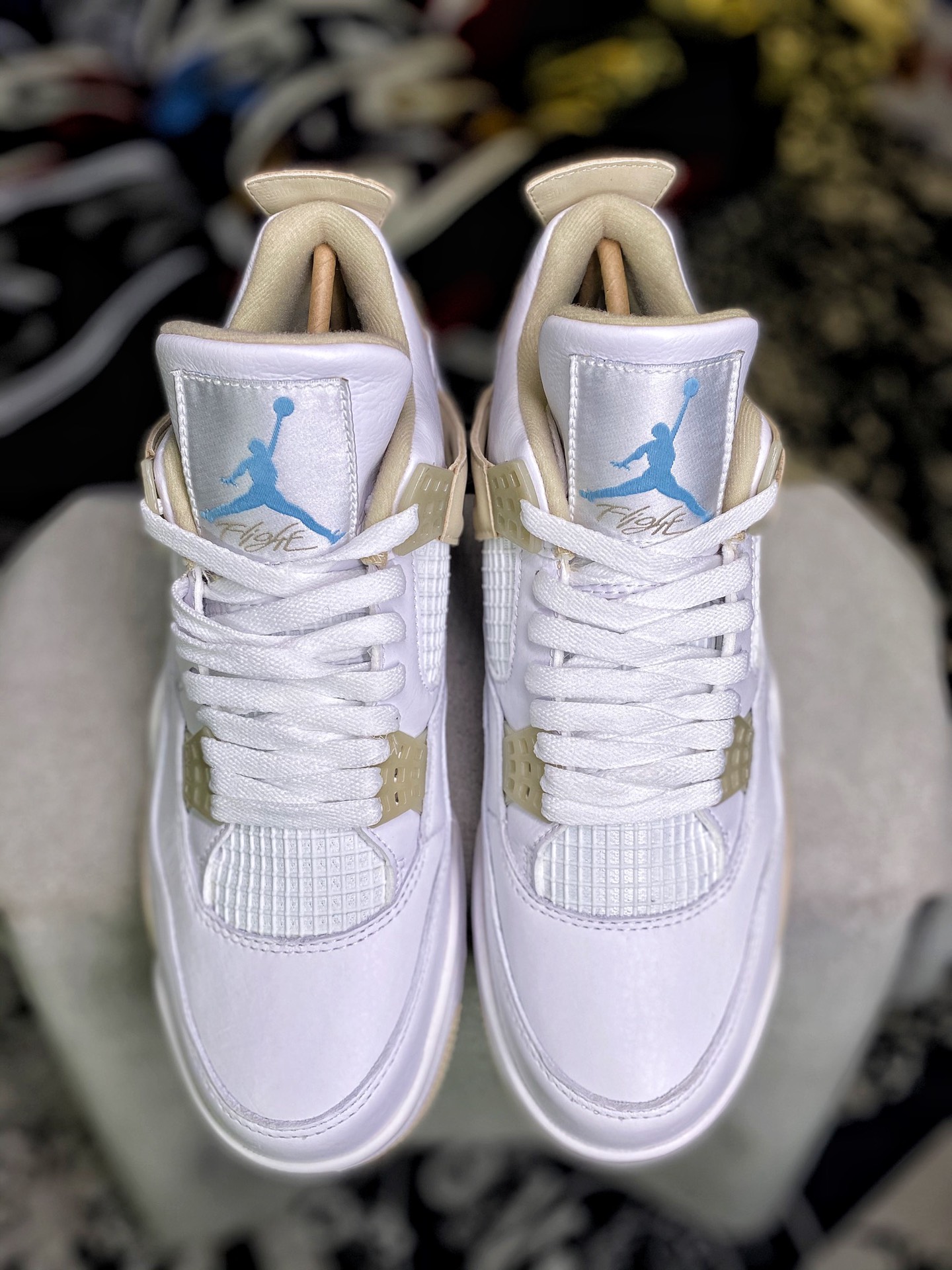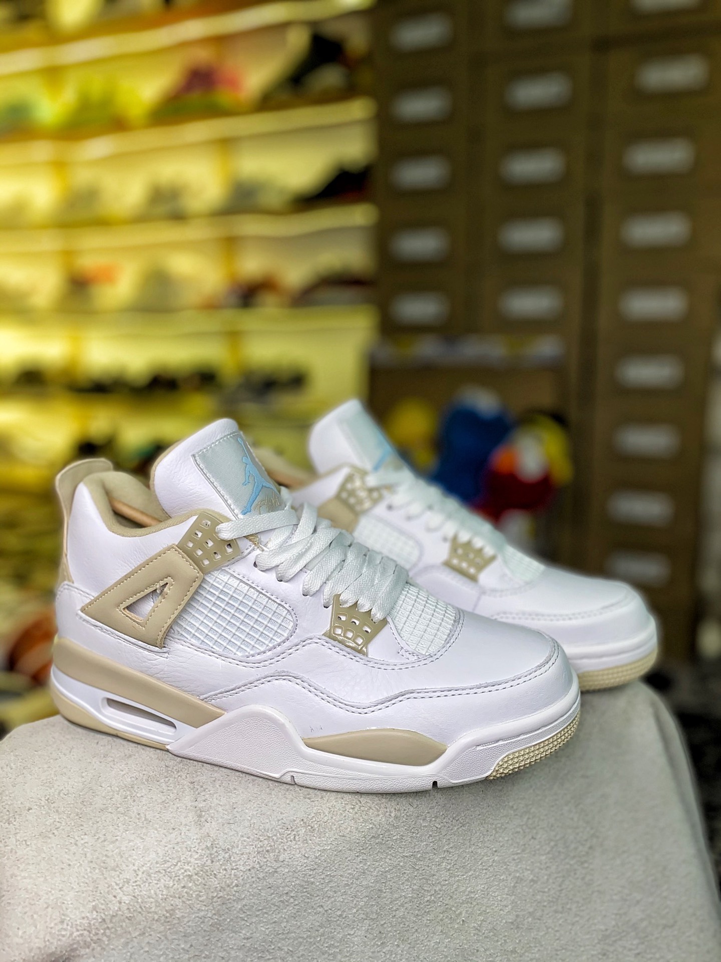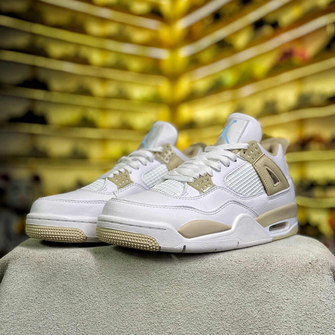 Pure original AJ4 platinum shipping ? ? Top leather ??Air Jordan 4 GS Linen AJ4 white gold basketball shoes Item Number: 487724-118 nSize: 40-47.5 with half size
