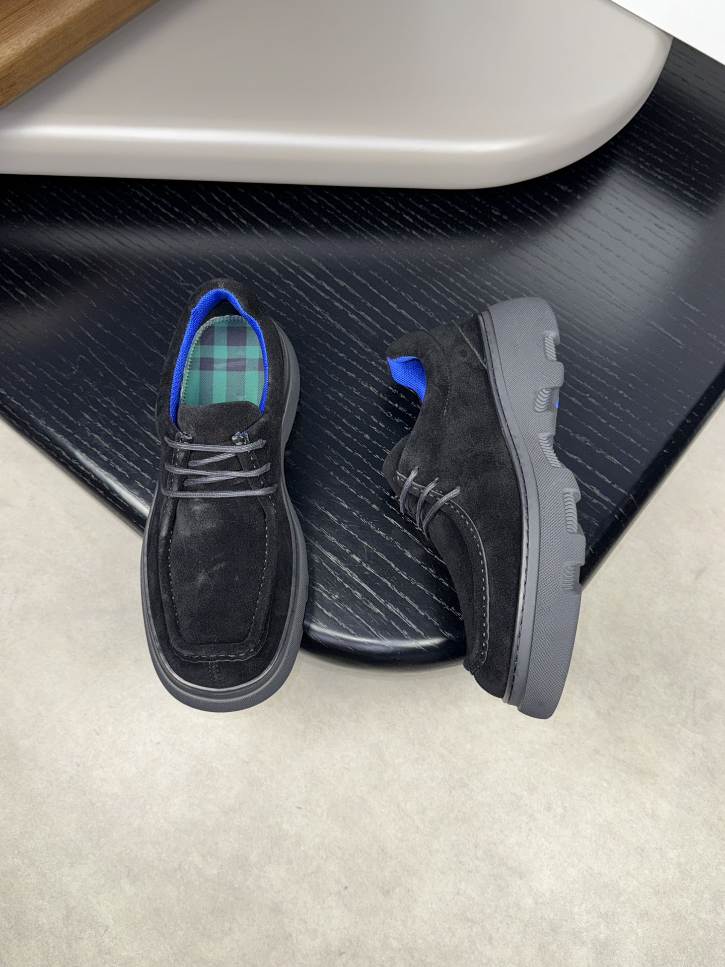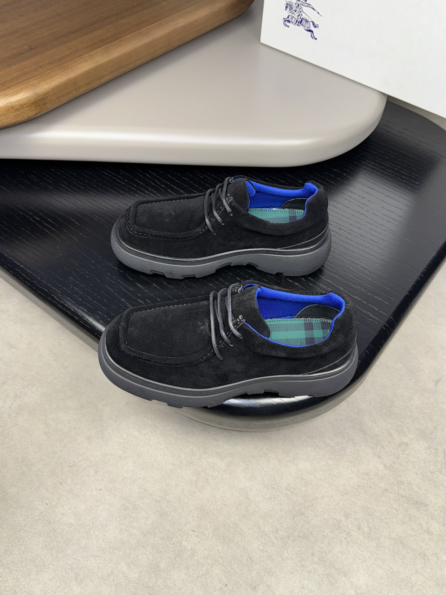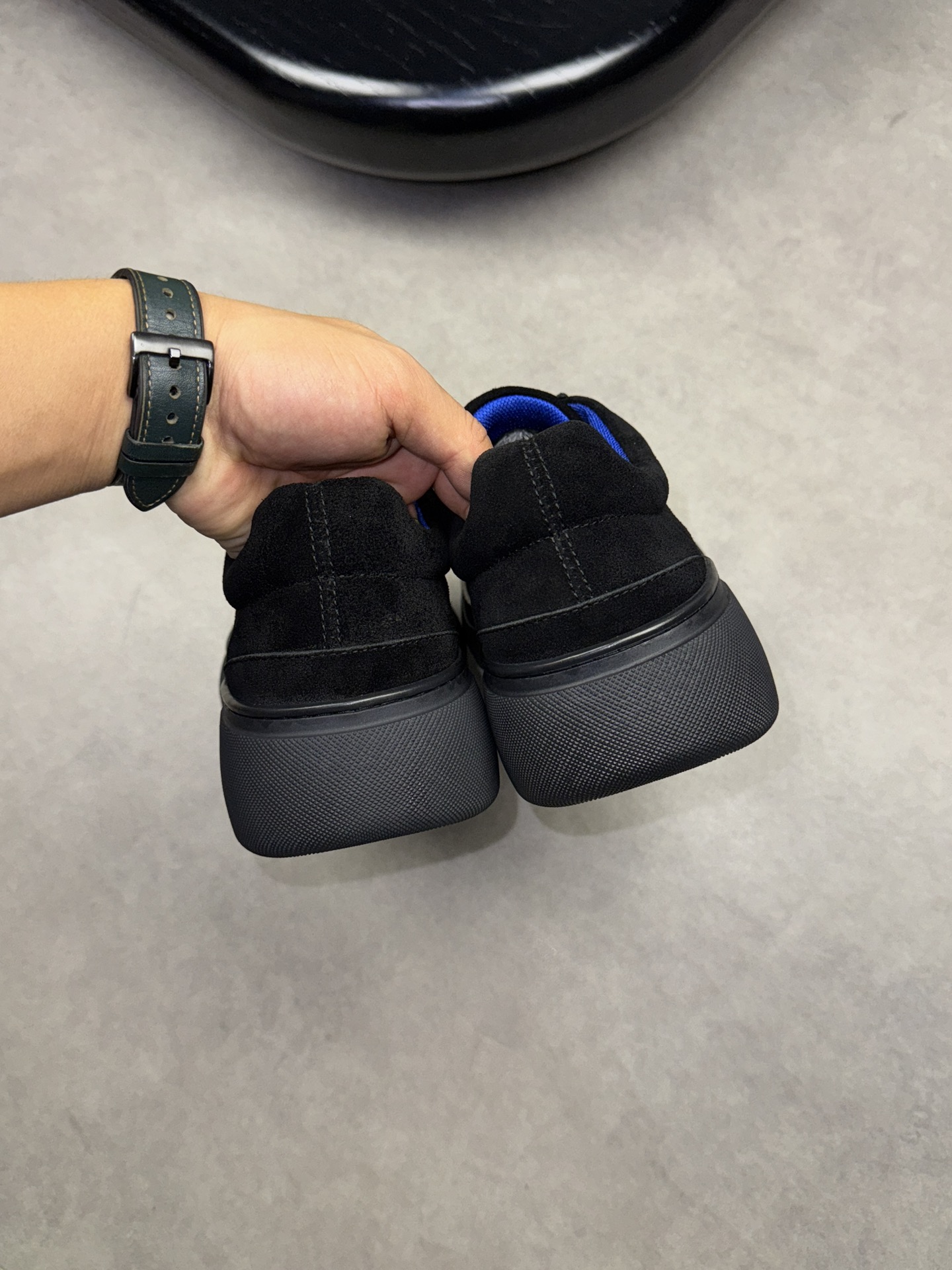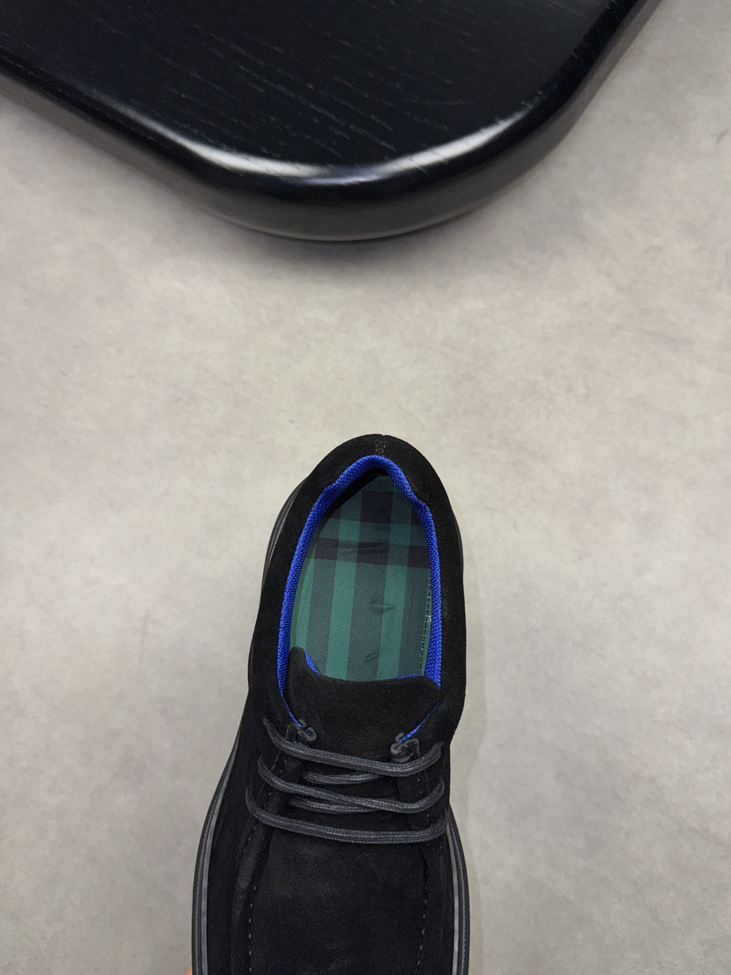 - Upper: ?? fleece calfskin with hand-stitched marking