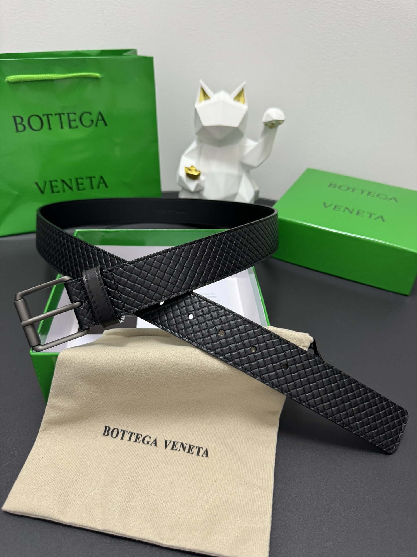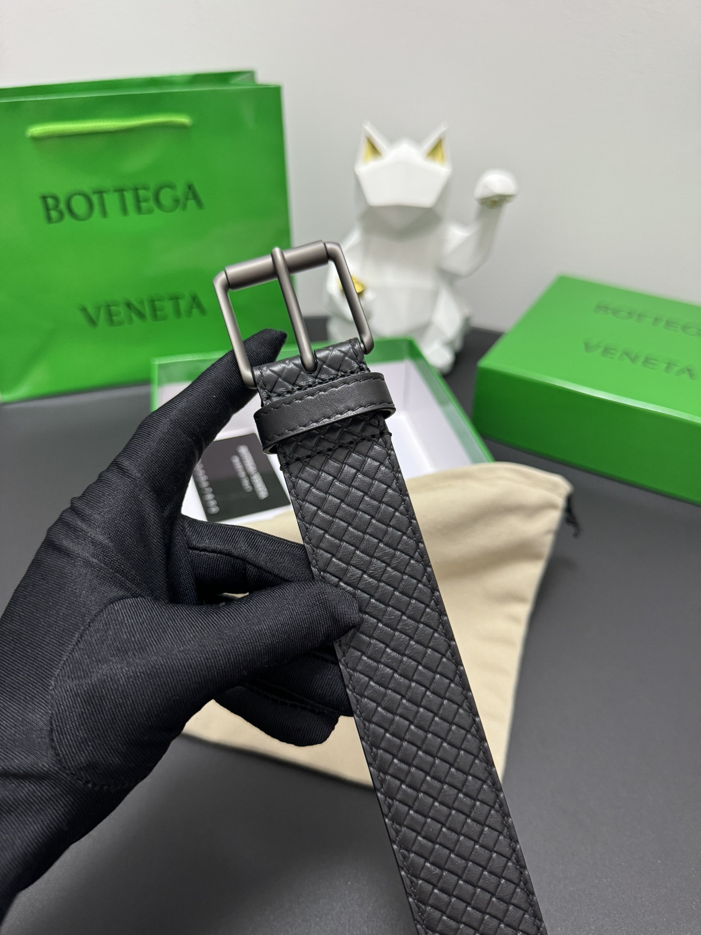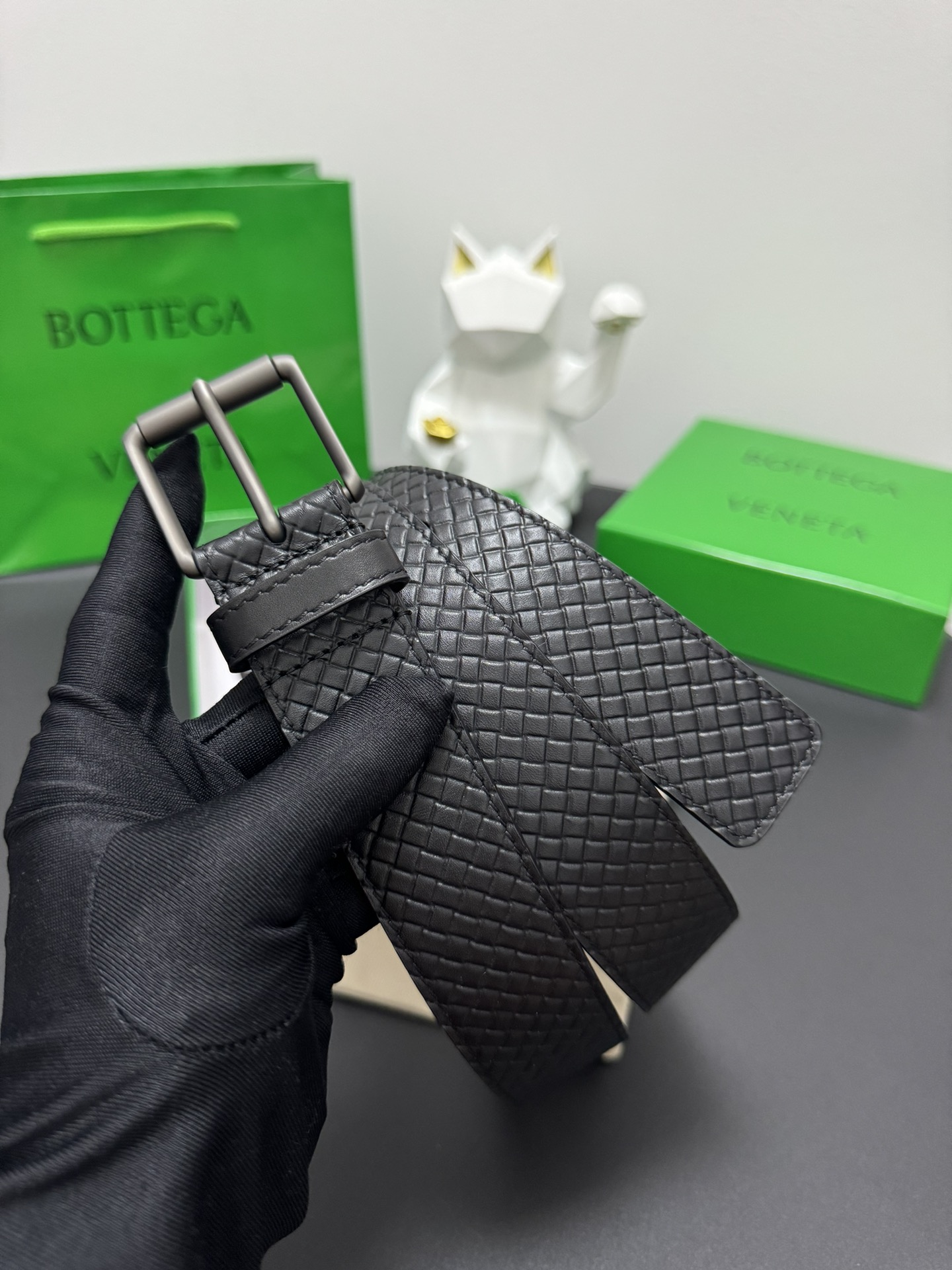 BOTTEGA VENETA 3.5cm Colour: Black A classic work of hand-embossed small checkered cowhide Every detail reflects the highest taste and style The overall design adds an elegant charm A model of understated luxury Elegant and charming aura Exquisite handicraft production.