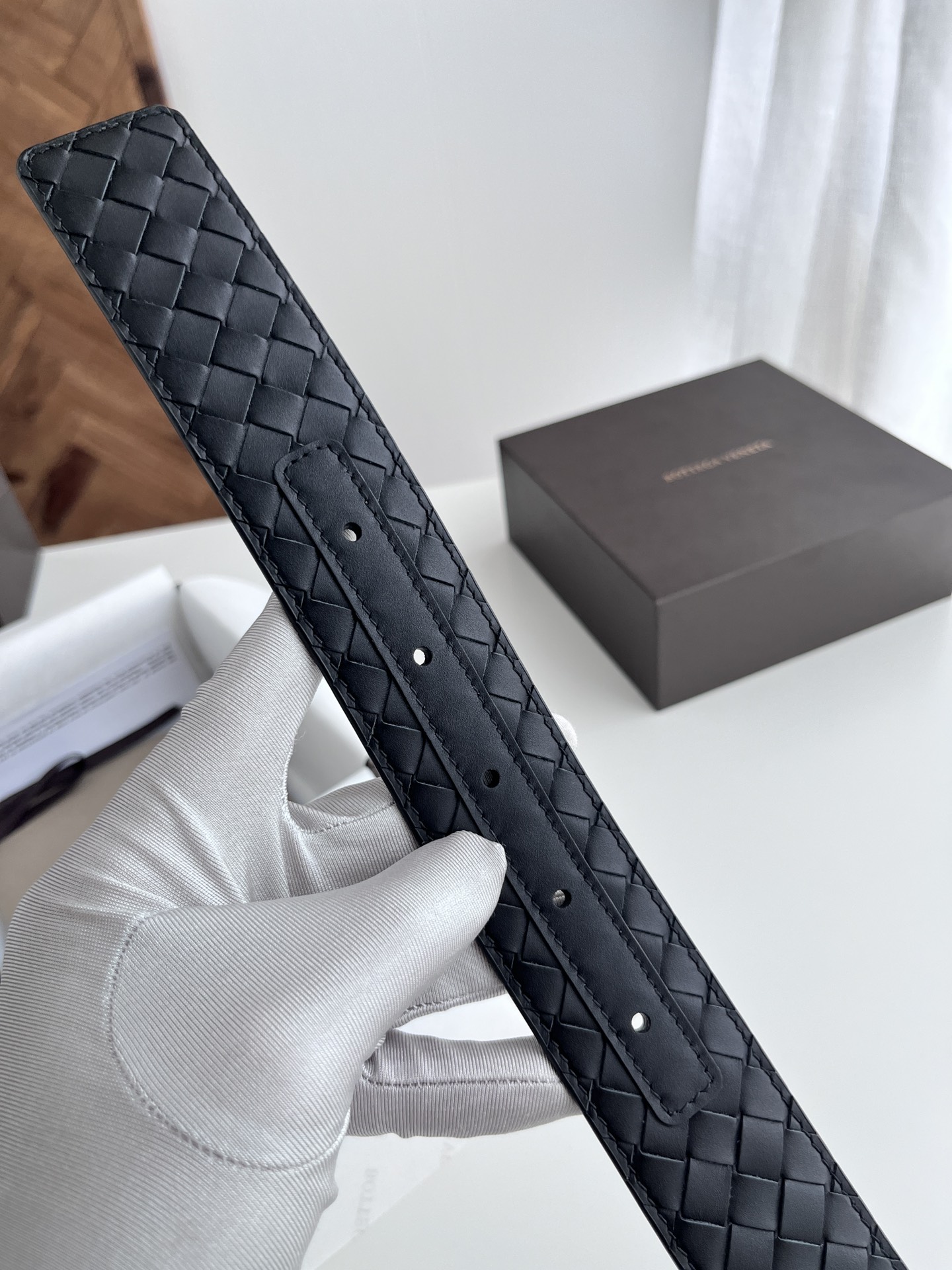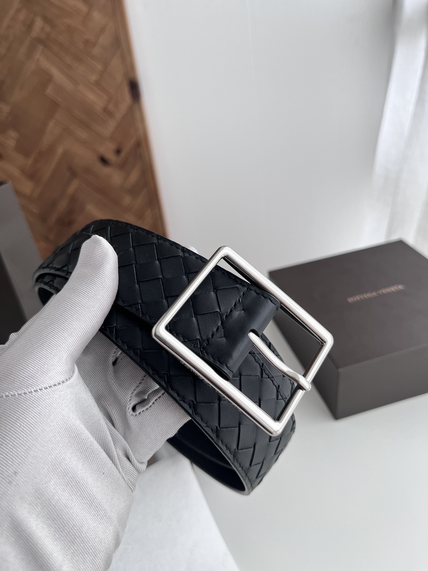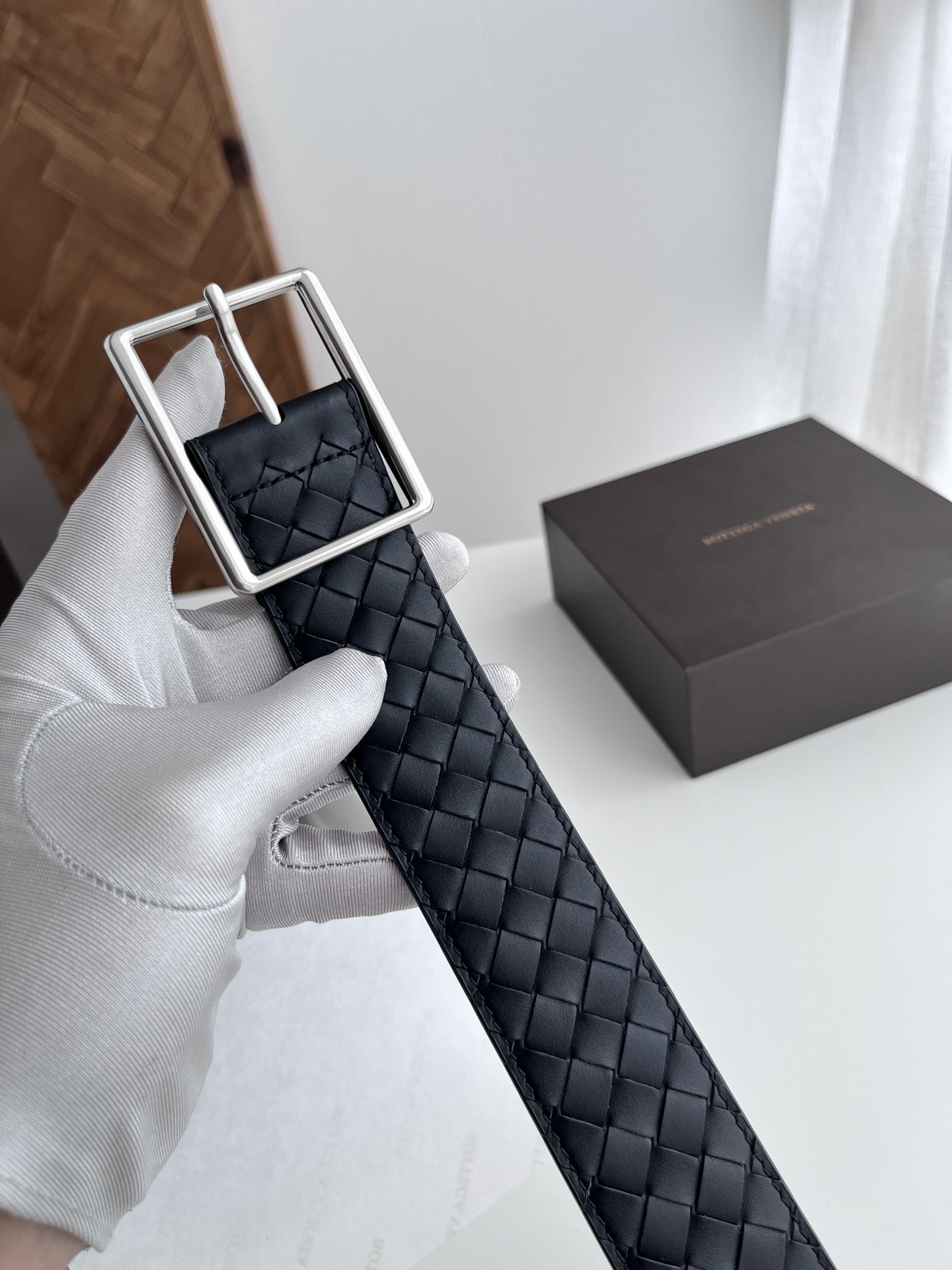 BV top-quality 2024 new wide men's belt, handcrafted with small checkered intrecciato piccolo braided Italian calfskin, paired with slightly retro silver pin buckle holes. Newly designed belt width 4.0cm. Color: black