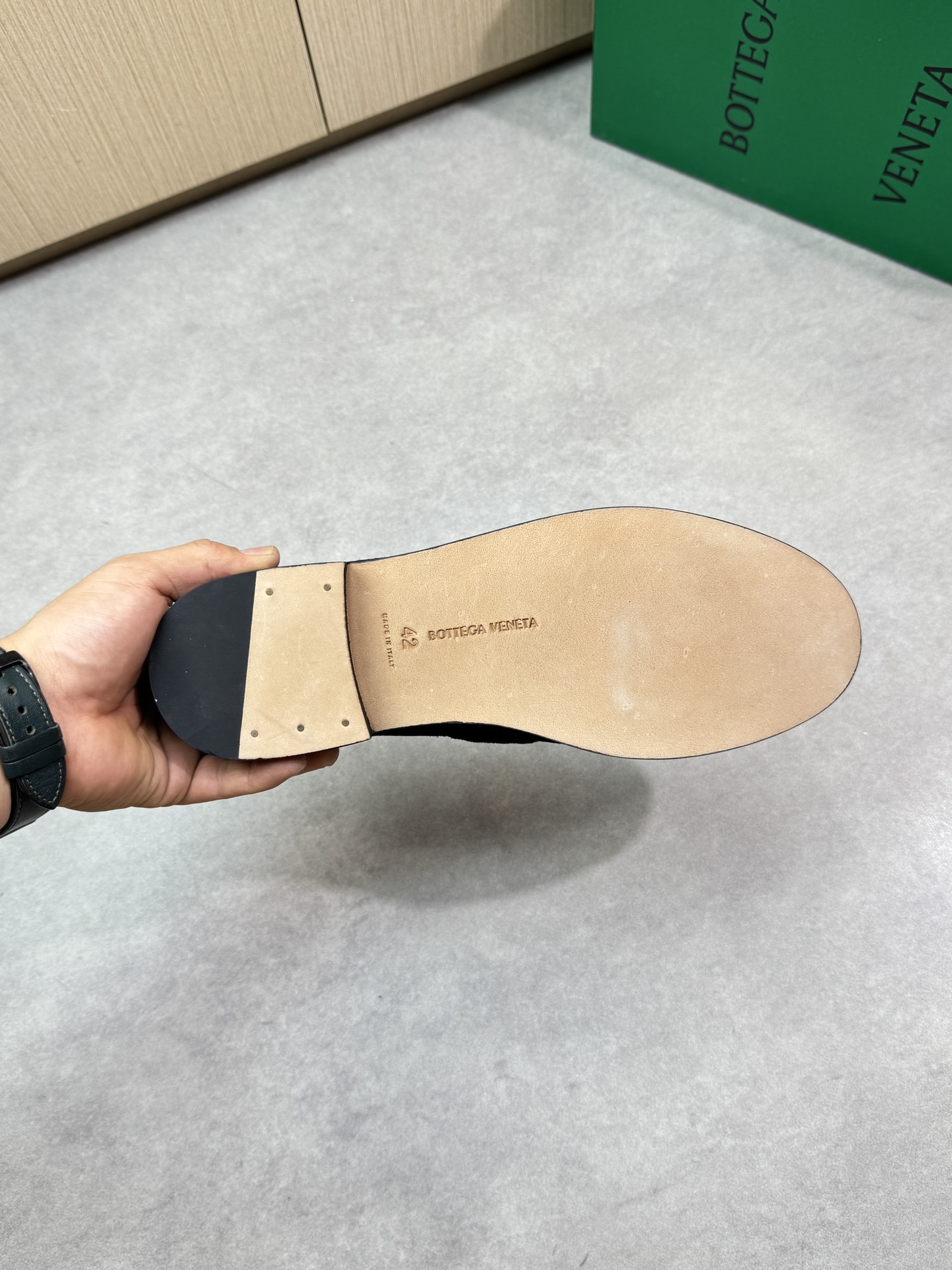 - Inside: Water-dyed sheepskin