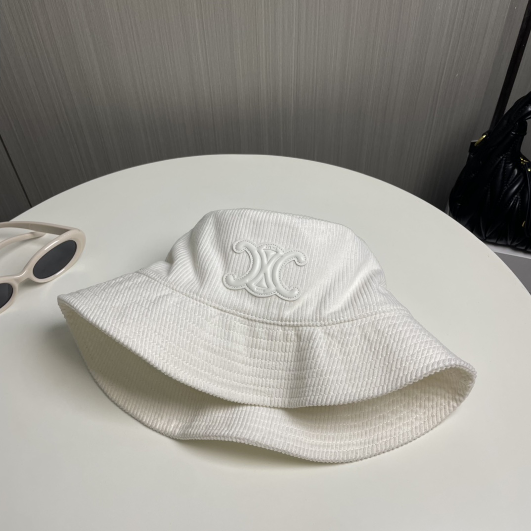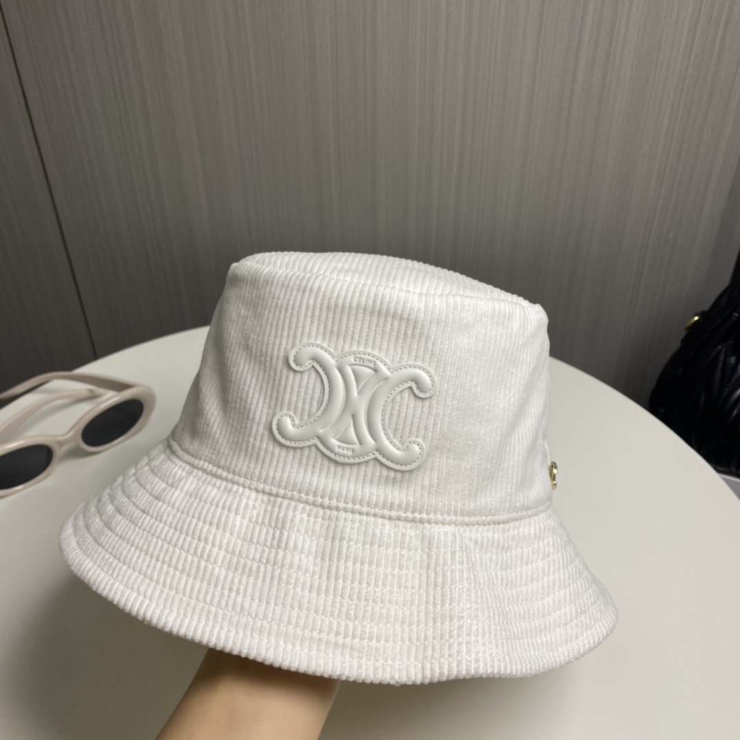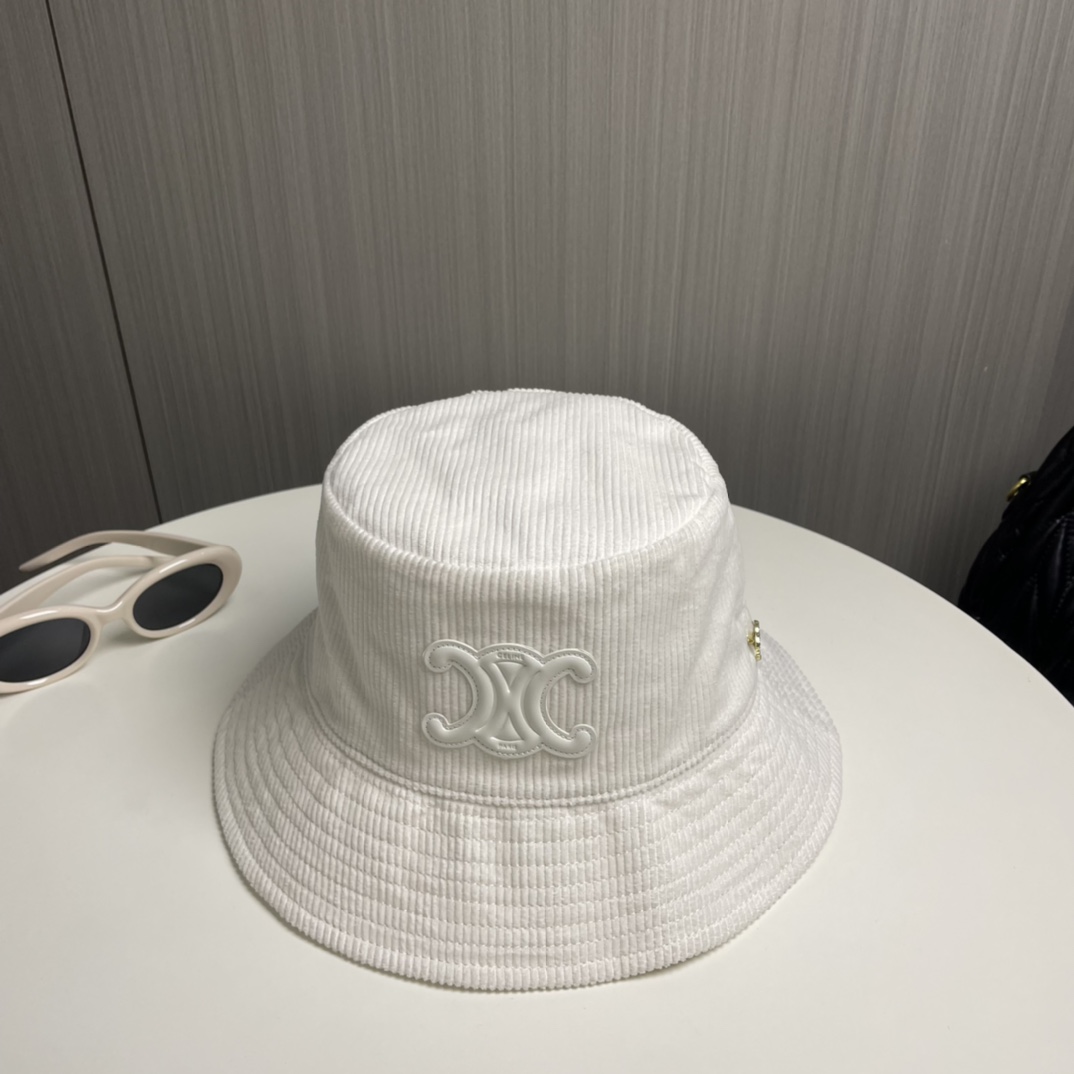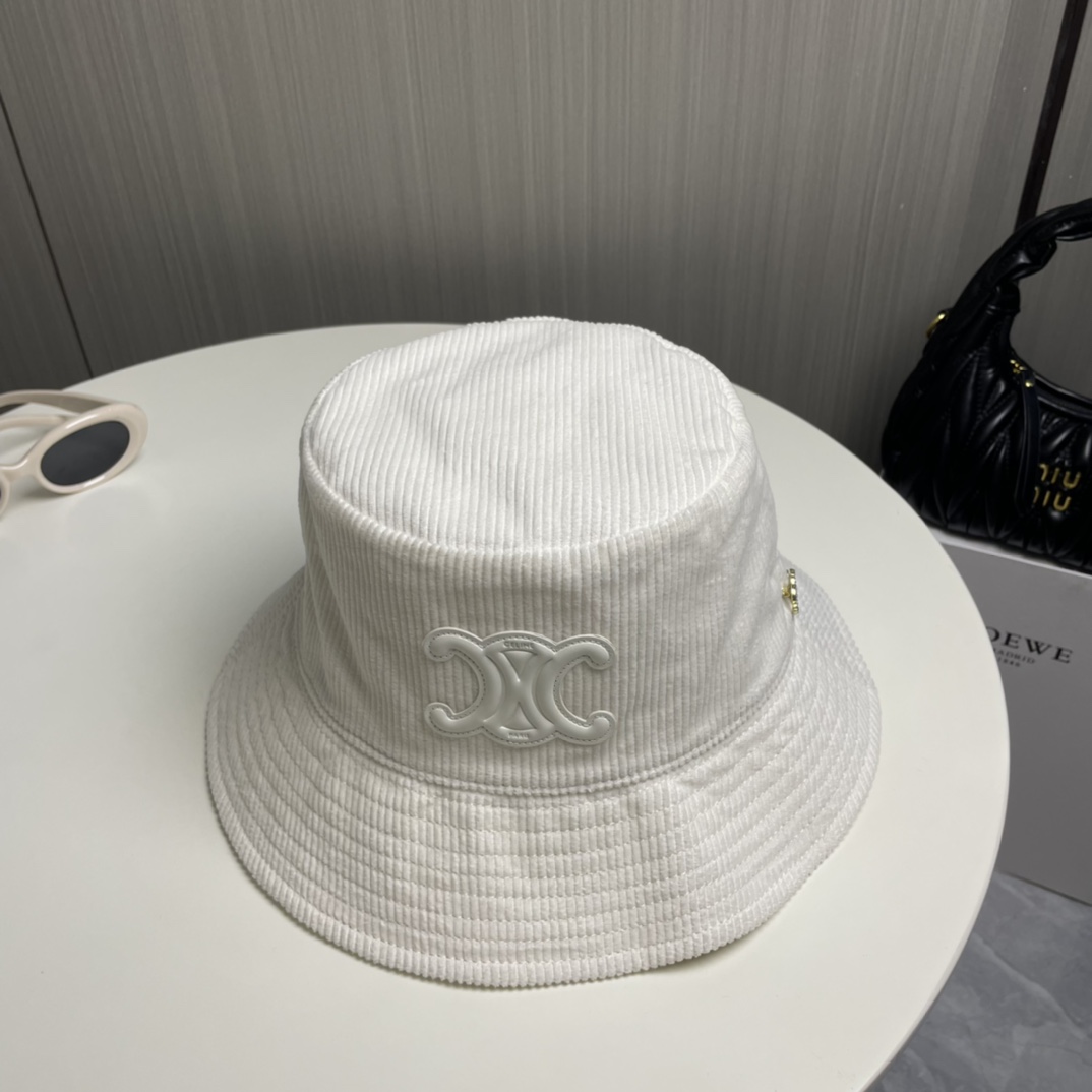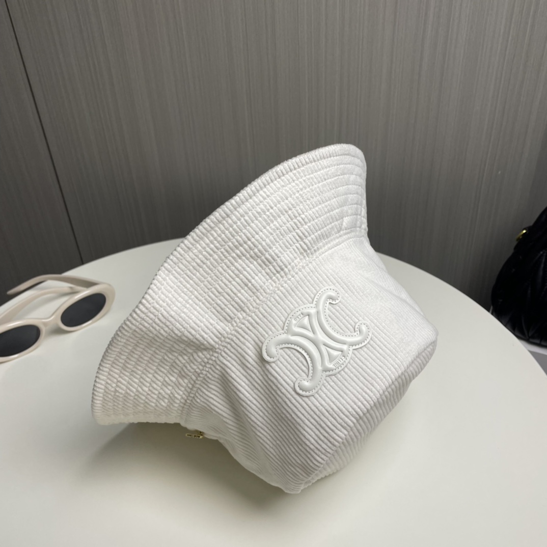 ?? CELINE high version official website latest style ?? Corduroy vertical fisherman hat for women, autumn/winter streetwear brand versatile retro trend