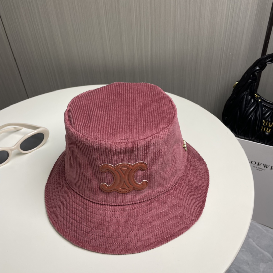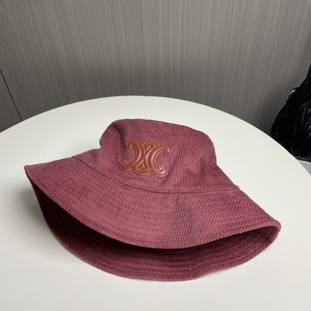 ?? CELINE high version official website latest style ?? Corduroy vertical fisherman hat for women, autumn/winter streetwear brand versatile retro trend