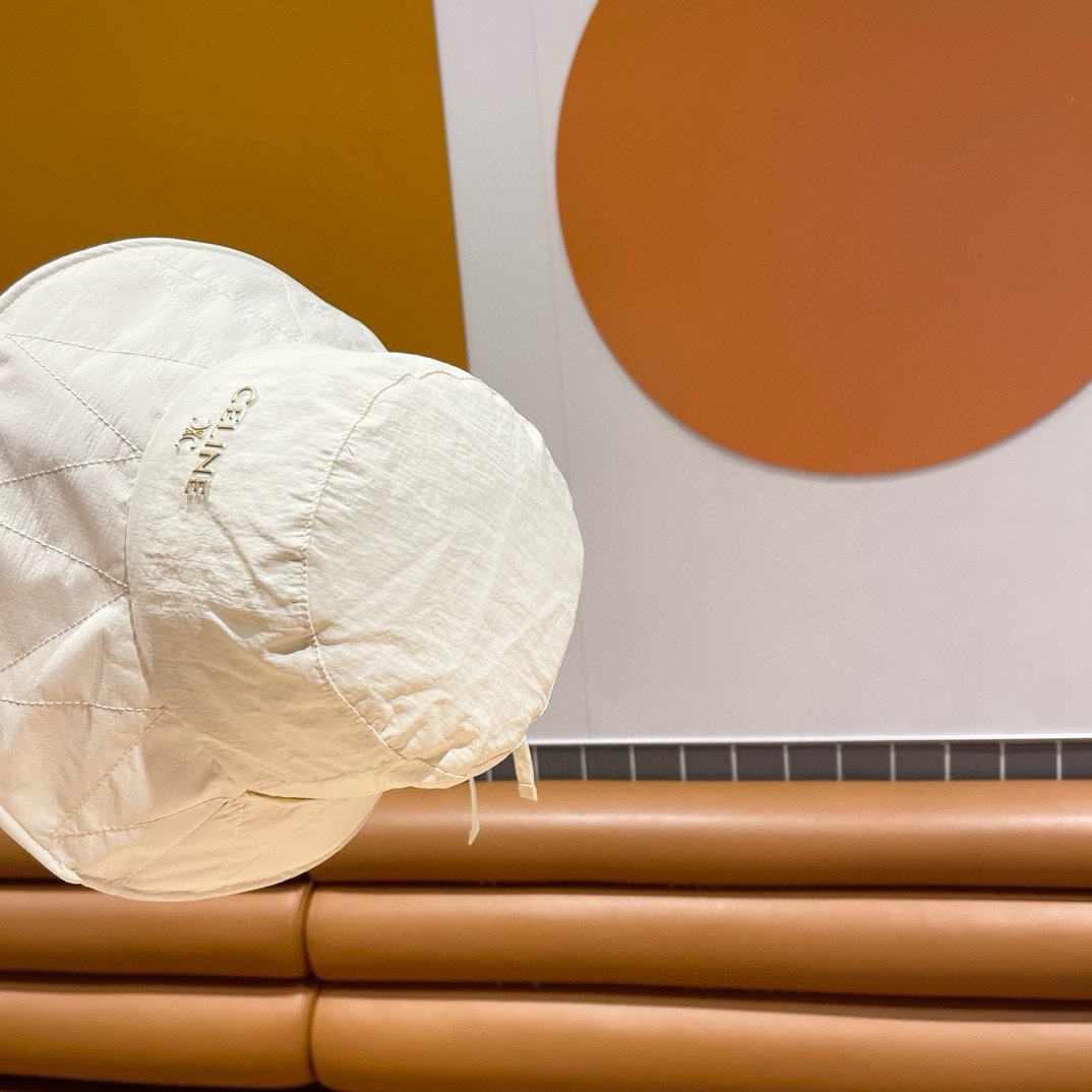 CELINE's simple and unadorned fisherman's hat for spring and summer sun protection, with a bow and large brim, is a trendy outdoor sunshade cloth hat