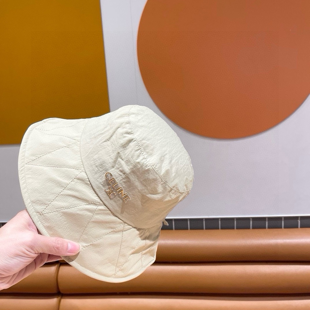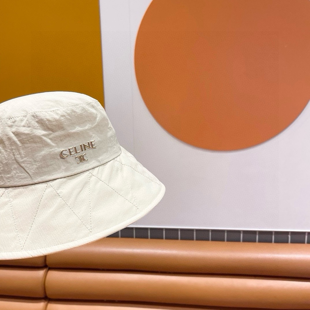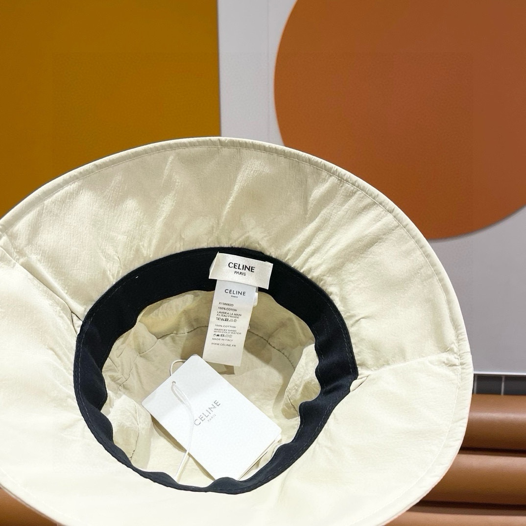 CELINE's simple and unadorned fisherman's hat for spring and summer sun protection, with a bow and large brim, is a trendy outdoor sunshade cloth hat