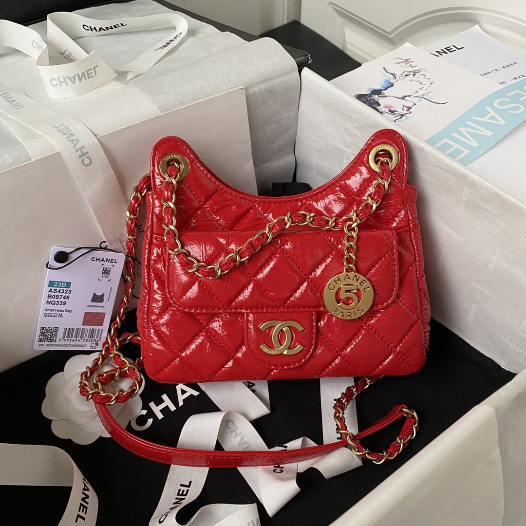 Small Chane1??23B?? Model :AS4323 Oil wax leather hobo stands at the ceiling of single-shoulder bags ?? The most popular bag, the shiny oil wax leather, the small pockets and the small gold coin pendant on the chain all show a little thought, retro and fashionable, the shoulder strap length is also friendly to petite people Stunning UPPER body ?? ONE shoulder crossbody ARMPit ??? Dimensions :17