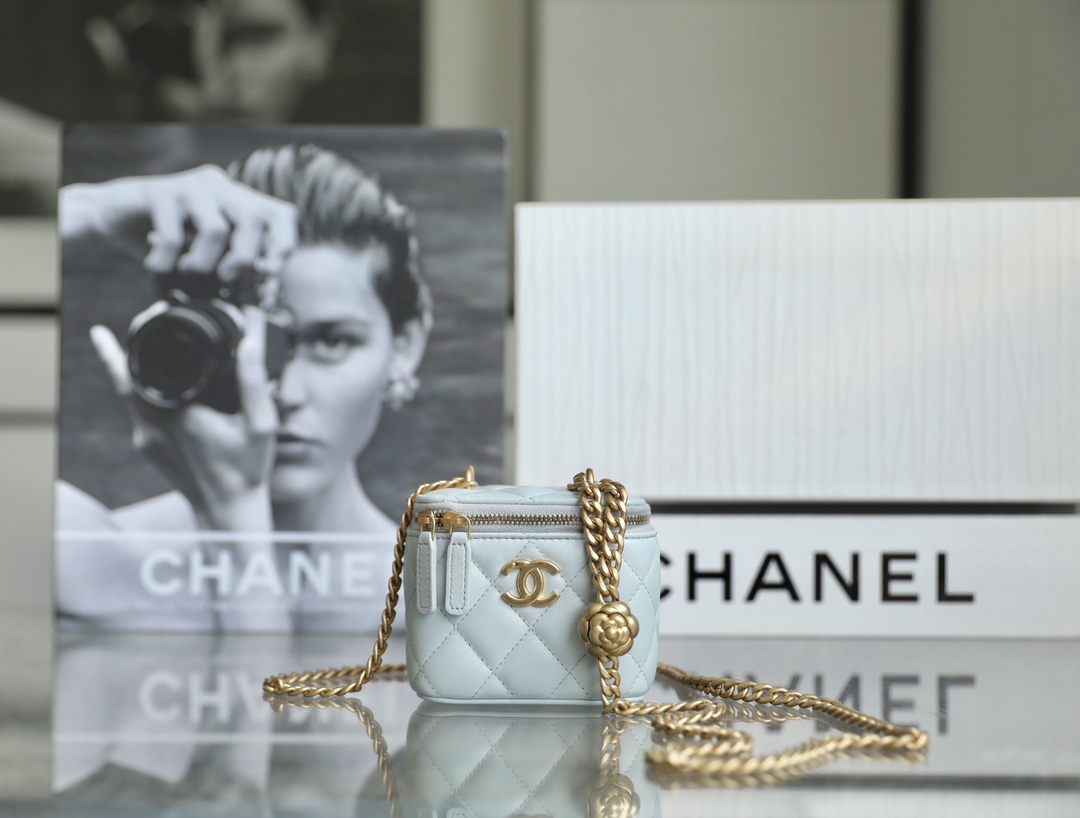 Newly released ????????????? 23?? Spring/Summer | Camellia adjustment buckle Box bag ?? Haze blue Counter price ???????????????? Purchase ?? Development I can't resist such square little boxes! The tender lambskin is paired with the exquisite camellia adjustment buckle. Who could stand it! The BACK will DEFINITELY be BEAUTIFUL in SUMMER ? Metal: thick-plated ?????? vintage gold Leather material: Fine lambskin Size: ????*??. Youdaoplaceholder2 *?? ????