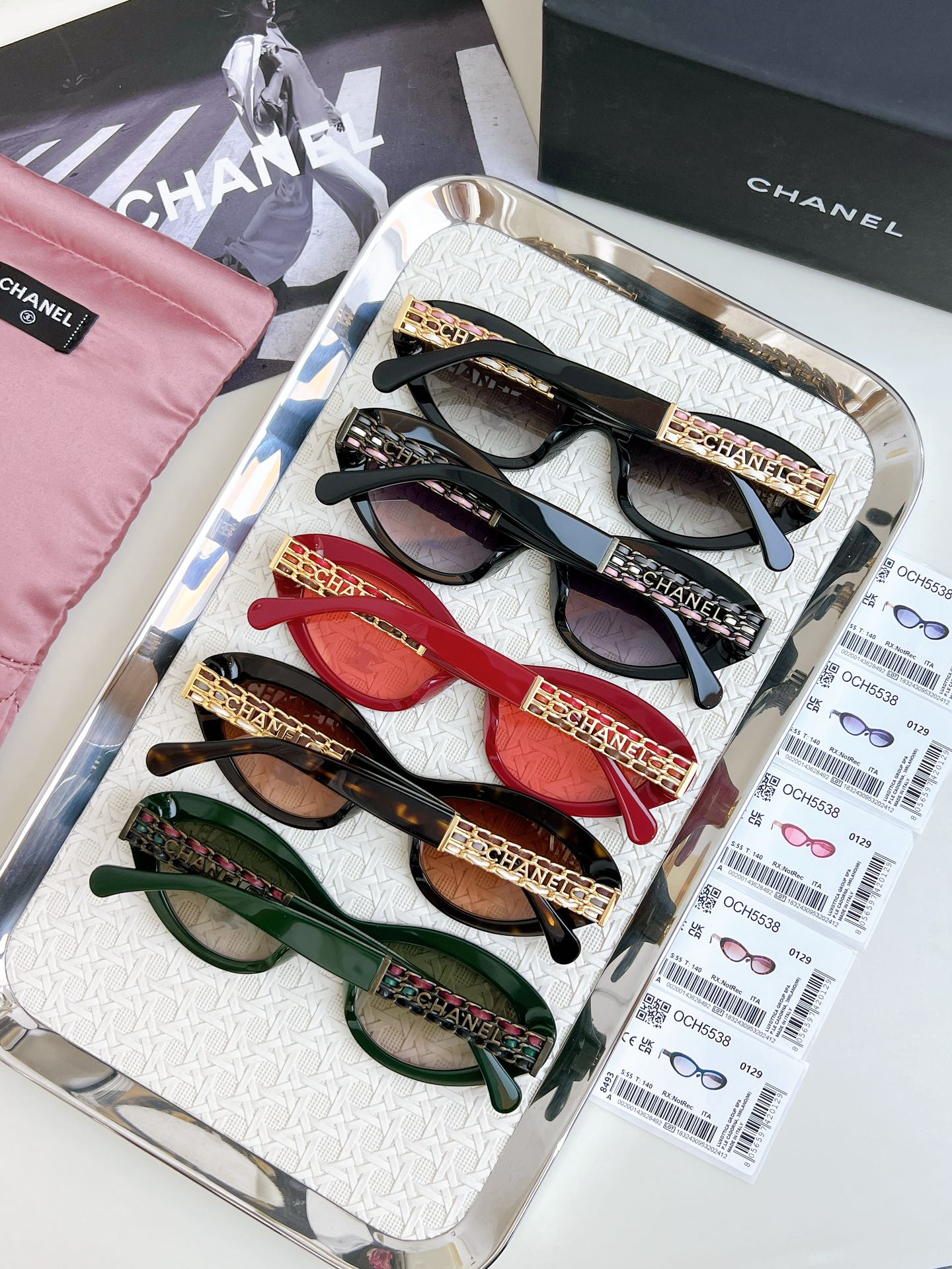 Compare your money for goods with ?? High version 1:1 color Exquisite Xiaoxiang's stunning sunglasses Three-color sheepskin woven temple legs CHANE* MOD: 5538 SIZE: 55 holes, 19-140 ??