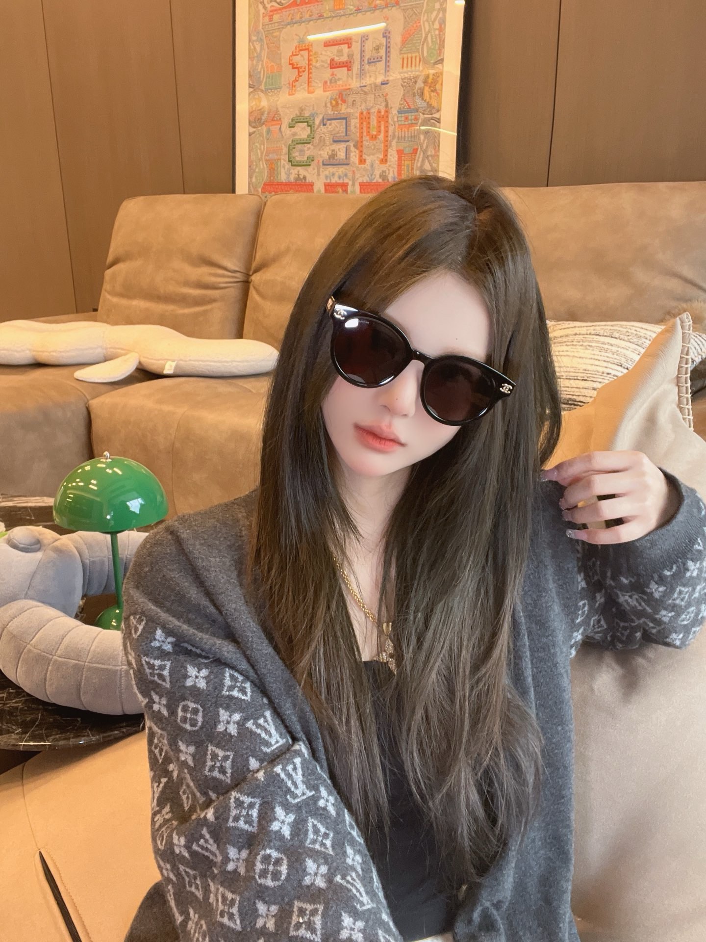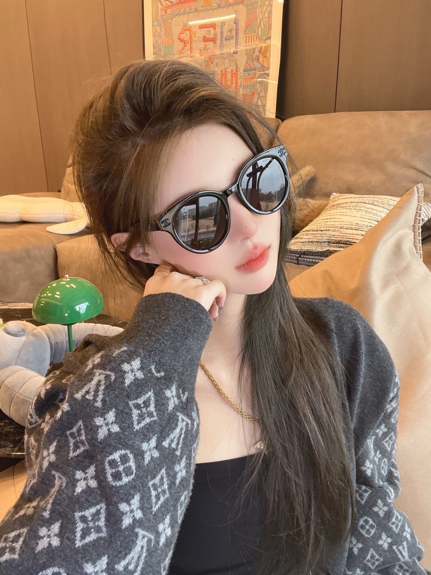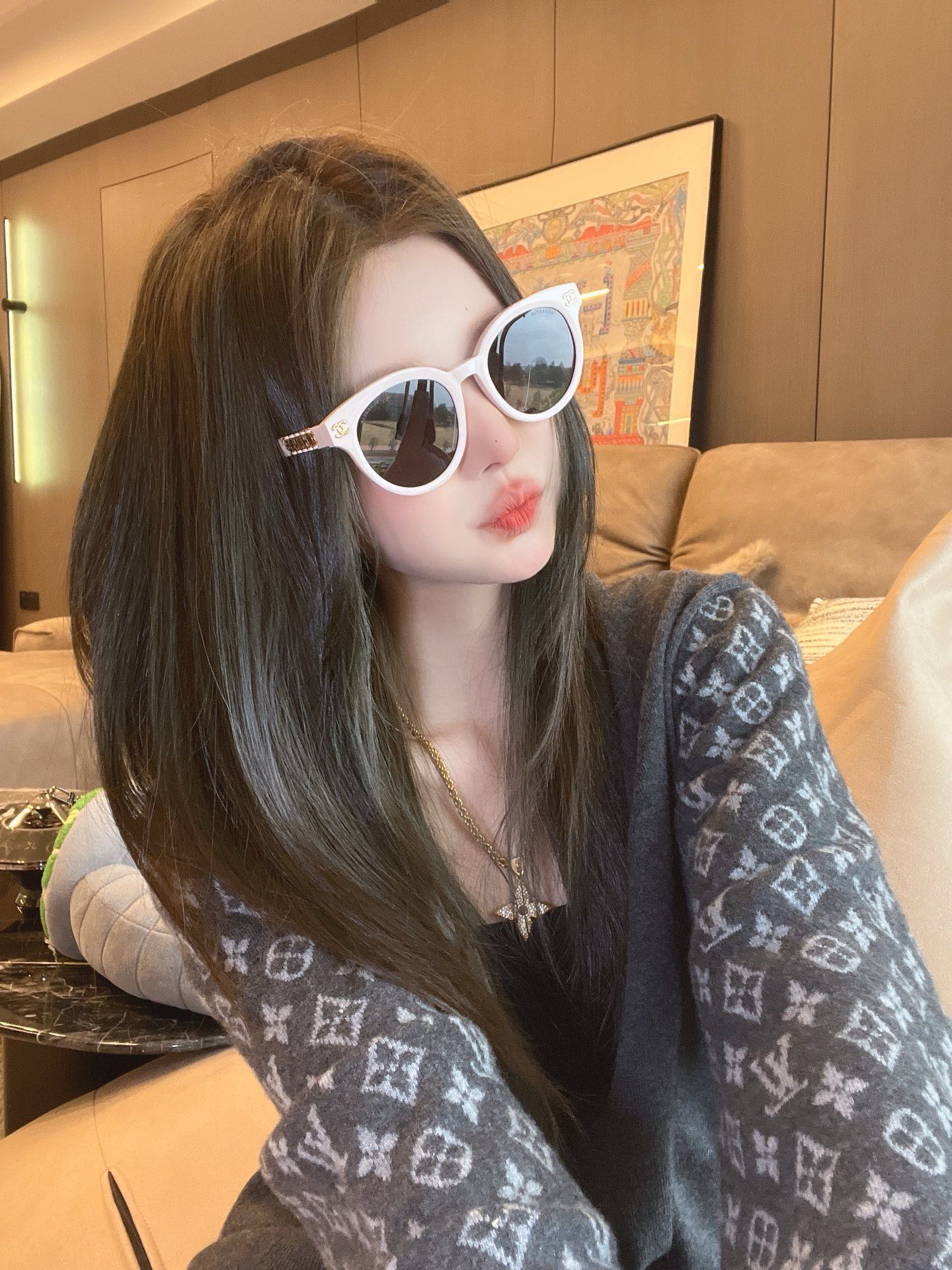 CHANE* 25ss stunning and versatile sunglasses The sheepskin chain ring is so beautiful! It's the favorite of delicate girls Mod: 6821 Size: 53 holes 22-145 Upper face picture