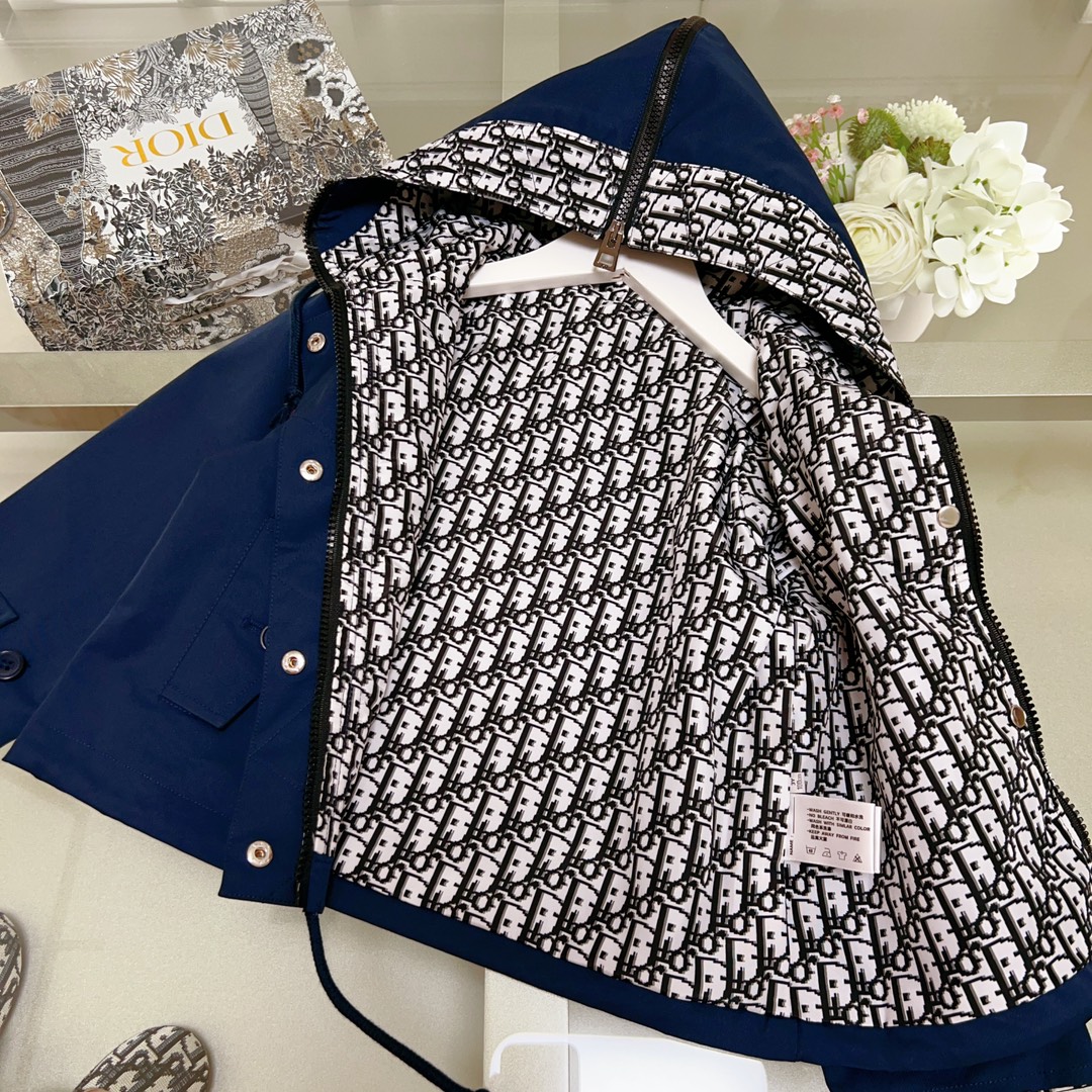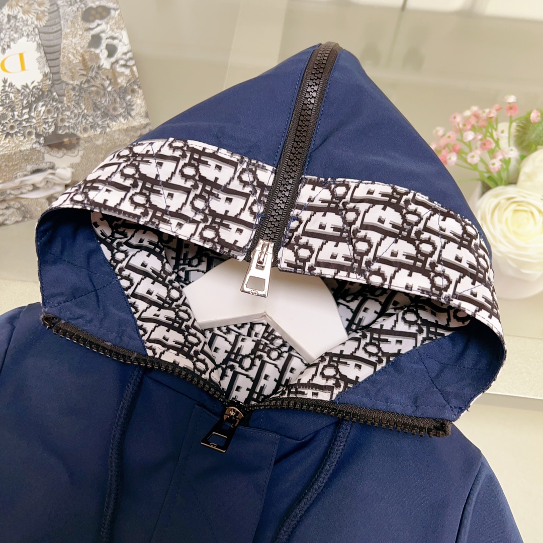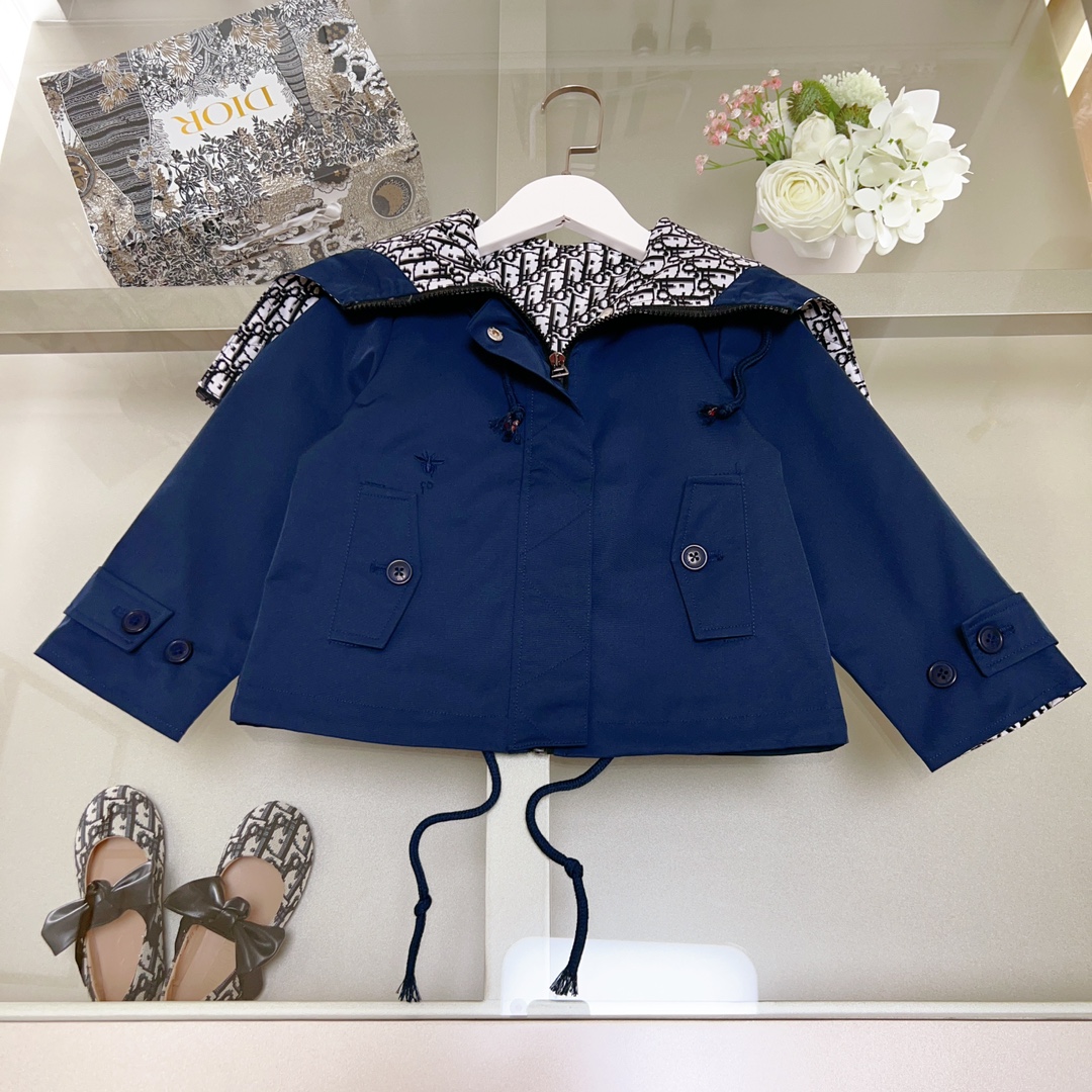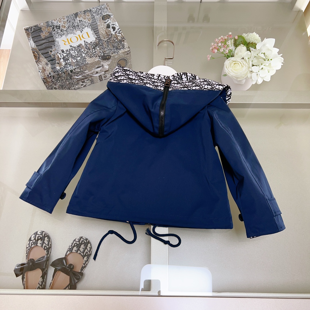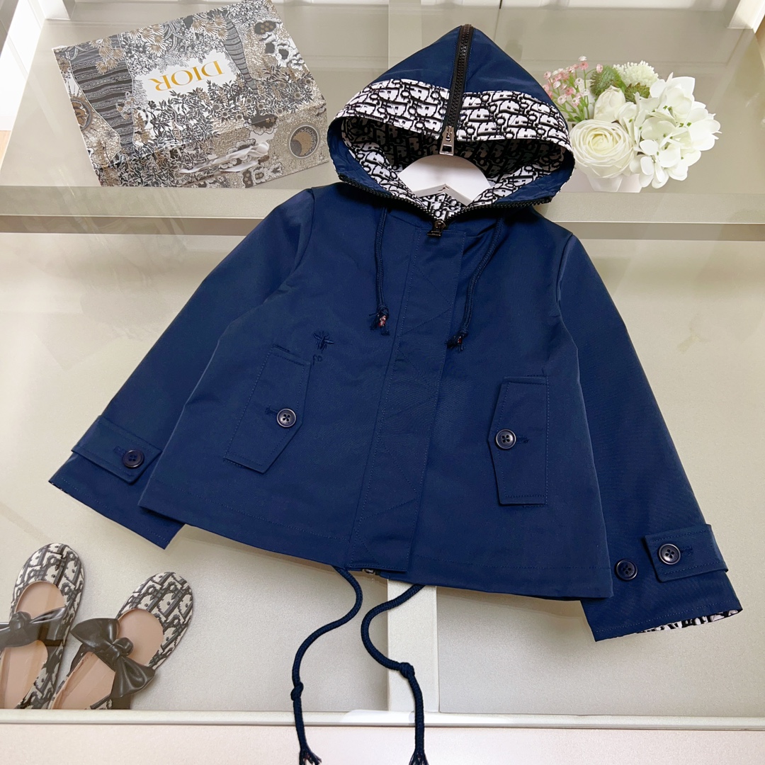 Dior Dior, high-end children's wear, private trench coat, autumn hooded jacket, neri presbyopic D letters, upper body comfortable, good-looking, code number: 100/110/120/130/140/150/160 cm