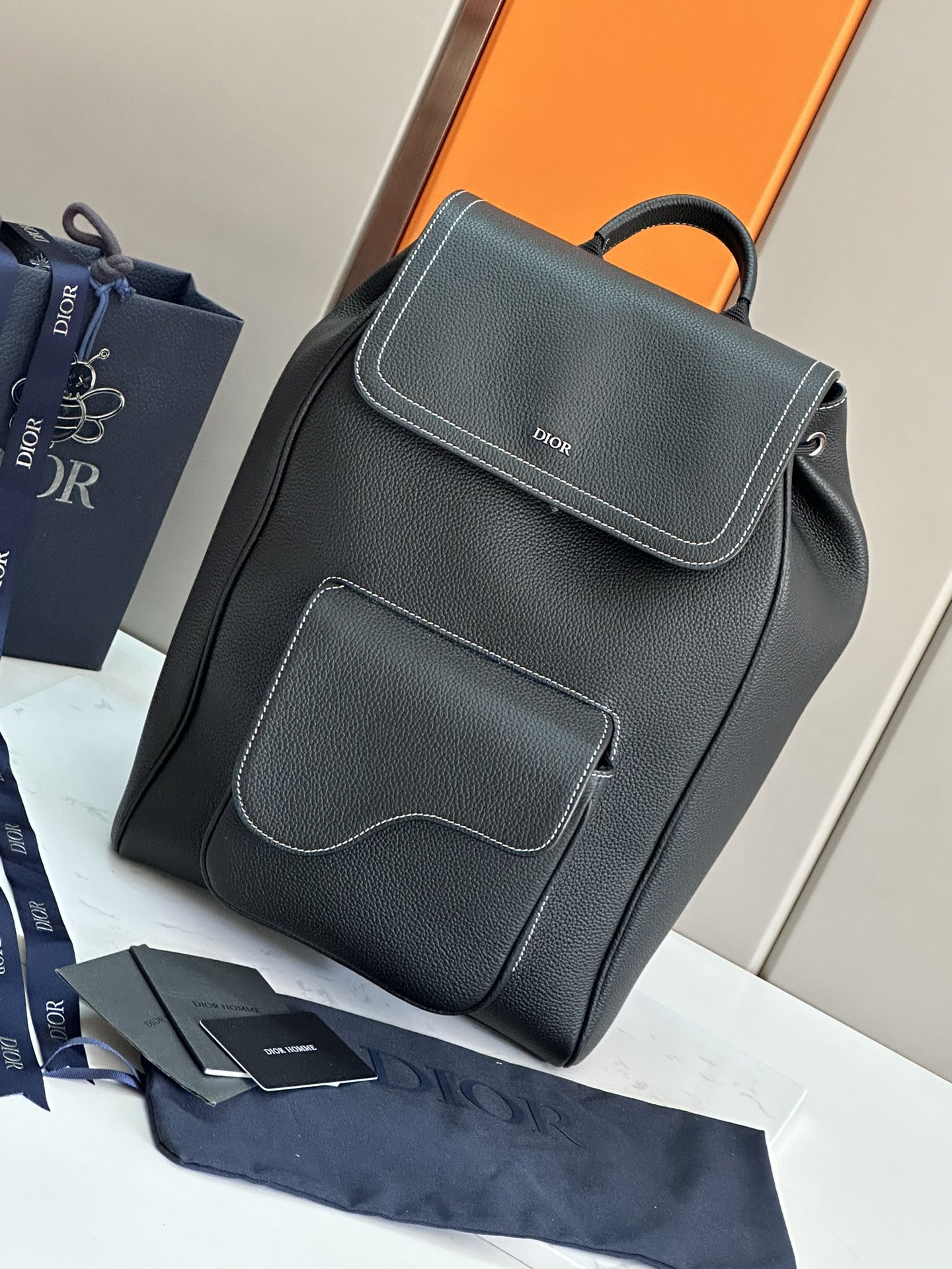 ? ? ? ? Top Original Order This saddle backpack features a stylish original design that highlights saddle style. The black grainy cowhide is paired with contrasting stitching, and the front is decorated with the Dior logo. The space is spacious and features a partition for storing various daily necessities. The front flip-top saddle pocket can hold wallets, keys, headphones or mobile phones, making it easy to access. Practical and versatile, it is the finishing touch for all kinds of looks. Black grainy cowhide paired with contrasting stitching The front is decorated with a metal-clad brass Dior logo The inner side is decorated with the Dior logo Flip cover and drawstring design Adjustable shoulder straps with padded mesh fabric Leather top handle The rear side of the handbag is reinforced with quilted technology knitted fabric and decorated with the Dior logo Front flip pocket Internal laptop compartment Contains a dust-proof bag Dimensions: 41.5 x 28.5 x 15 cm (Length x height x Width) Number: 93329, small