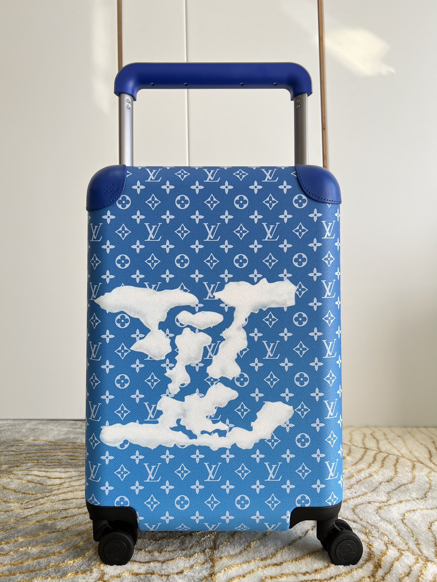 [Exclusive Real Photos of the Blue Sky and White Clouds Suitcase] The all-new Horizon suitcase revolutionizes Louis Vuitton's legendary classics with individual creativity, embellishing the iconic Monogram canvas with travel stickers and retracing the design style of the brand's traditional suitcases. The leather corner protection and the oversized external handle enrich the smart details, creating an elegant and practical travel companion. Detailed features: 35.0 x 23