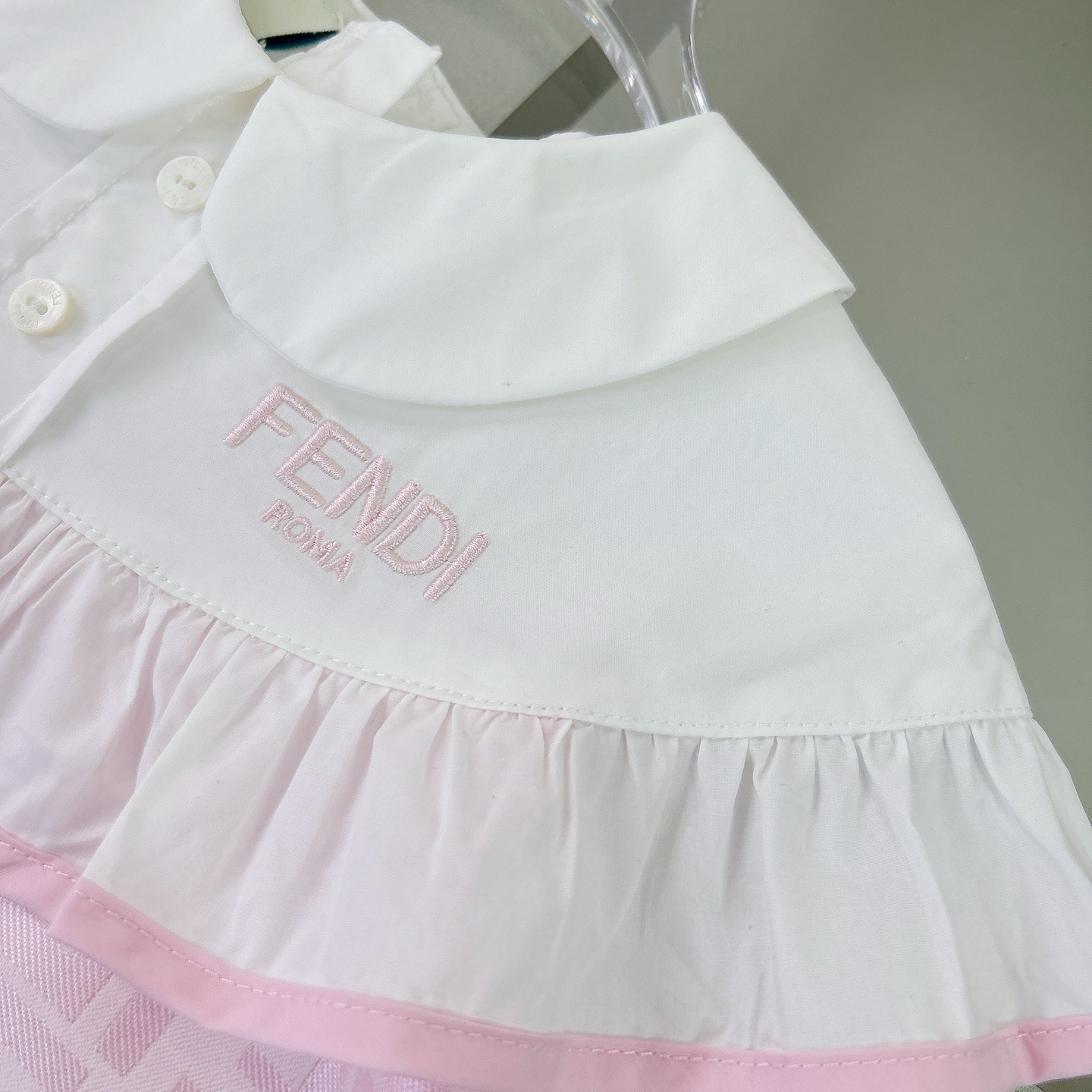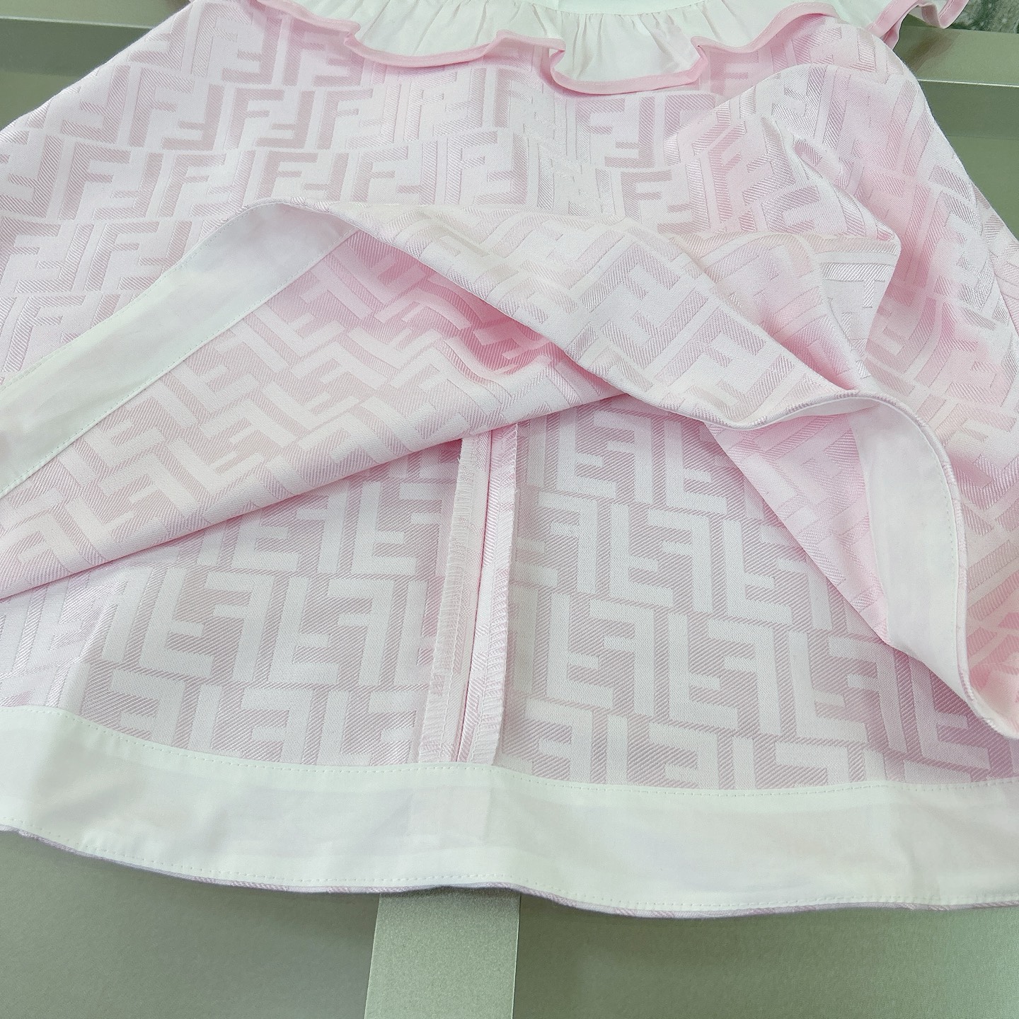 Fendi, high-end children's clothes, girls dress, heavy delicate embroidery, decorated with the whole picture of FF fastens with color logo, the upper part of the body comfortable, good-looking, code number: 90/100/110/120/130/140/150/160 cm