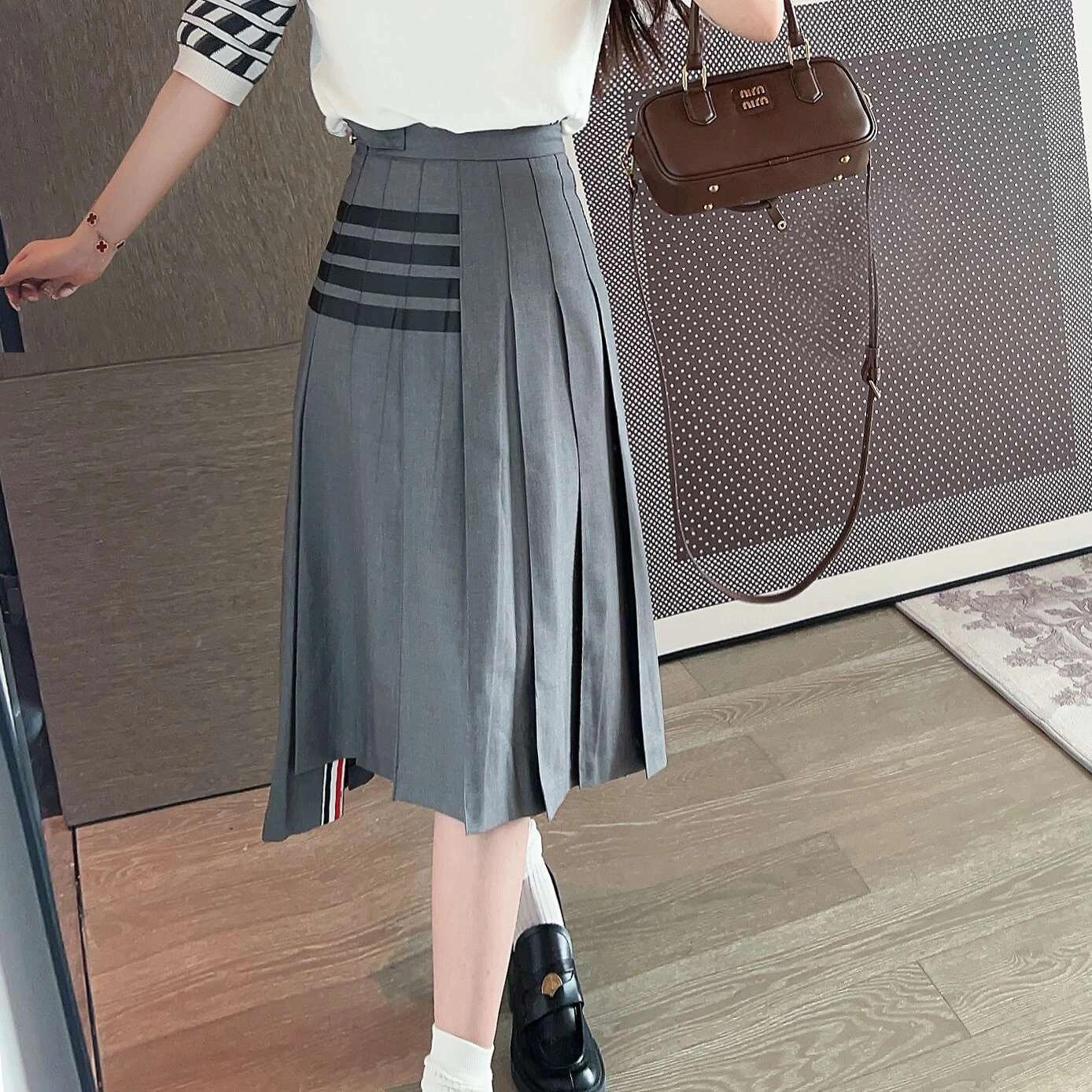 Thom Browne TB multicolored woven black striped pleated long dress