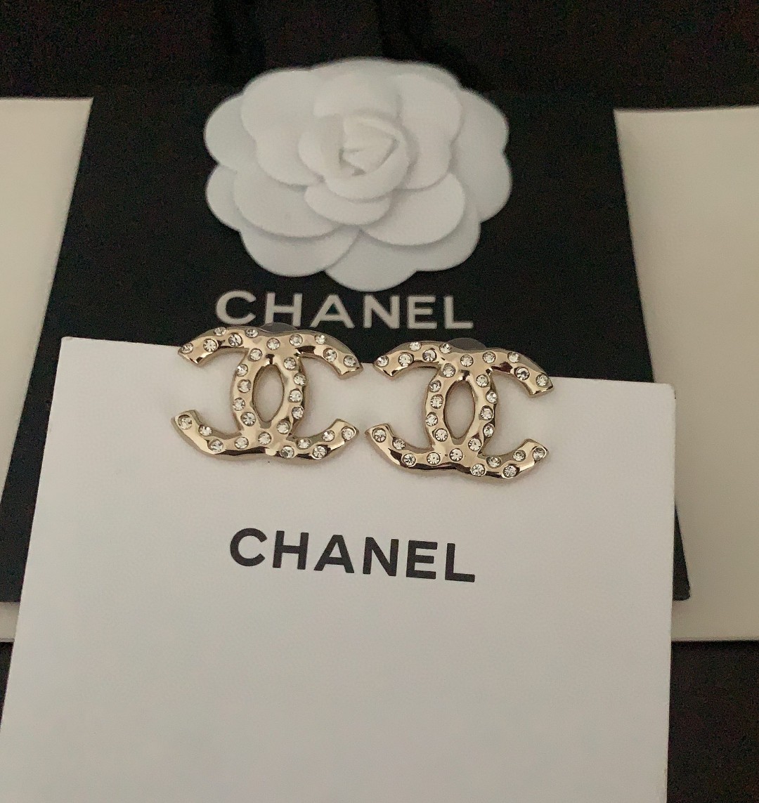 ch*nel latest ???? irregular round diamond cc stud Earrings