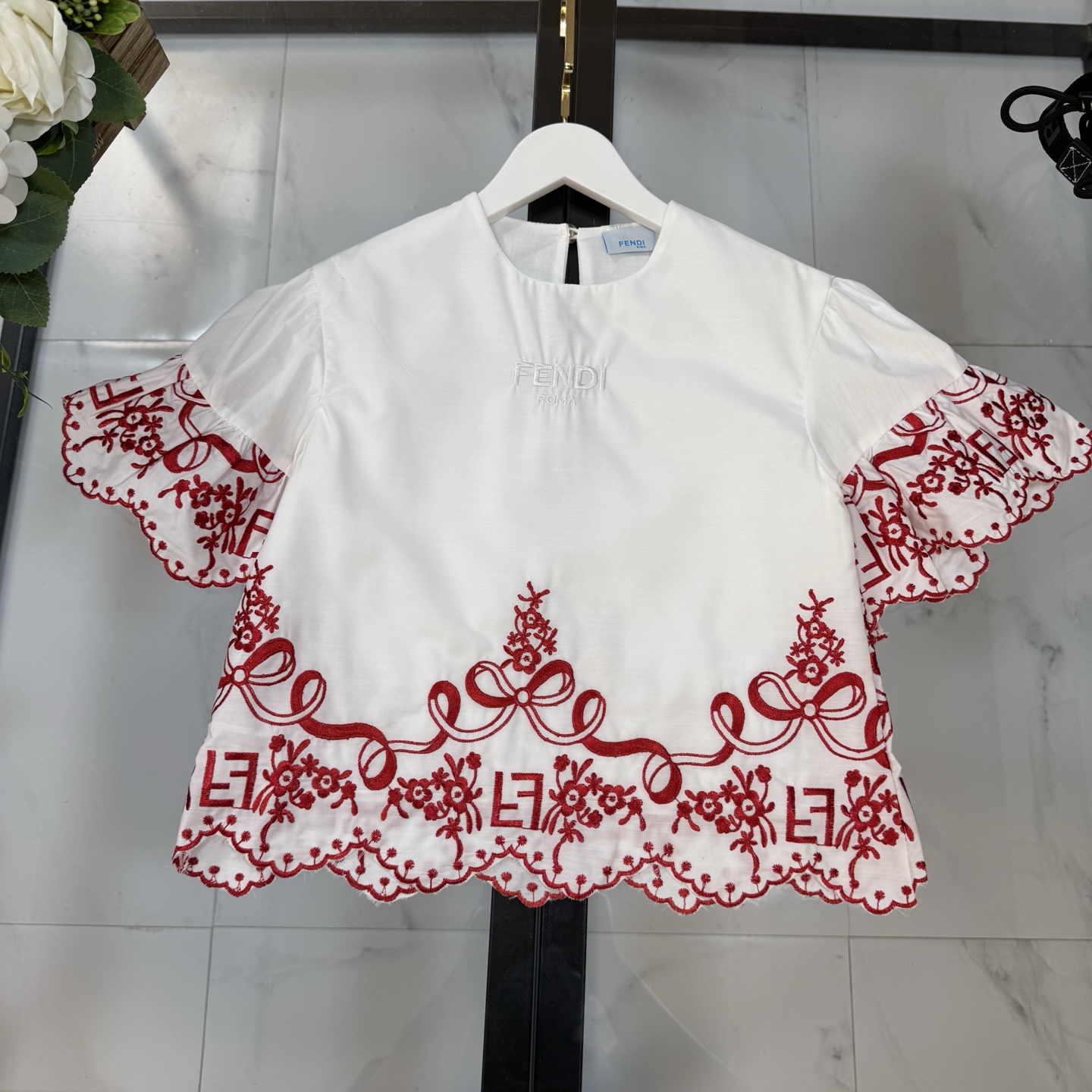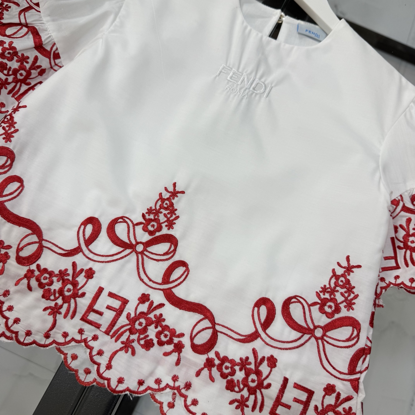Fendi, high-end children's clothes, girls dress, double layer design, outer woven cotton, cotton, inner outer skirt FF embroidery ?? wine red color, body comfortable, good-looking, code number: 100/110/120/130/140/150 cm