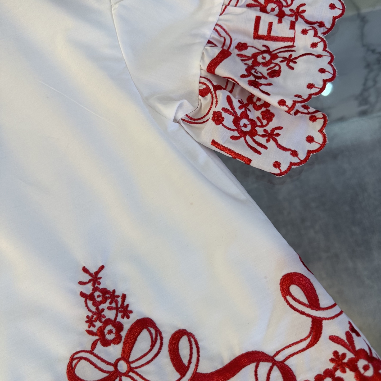 Fendi, high-end children's clothes, girls dress, double layer design, outer woven cotton, cotton, inner outer skirt FF embroidery ?? wine red color, body comfortable, good-looking, code number: 100/110/120/130/140/150 cm