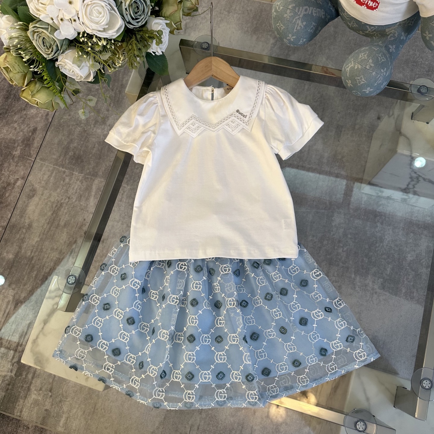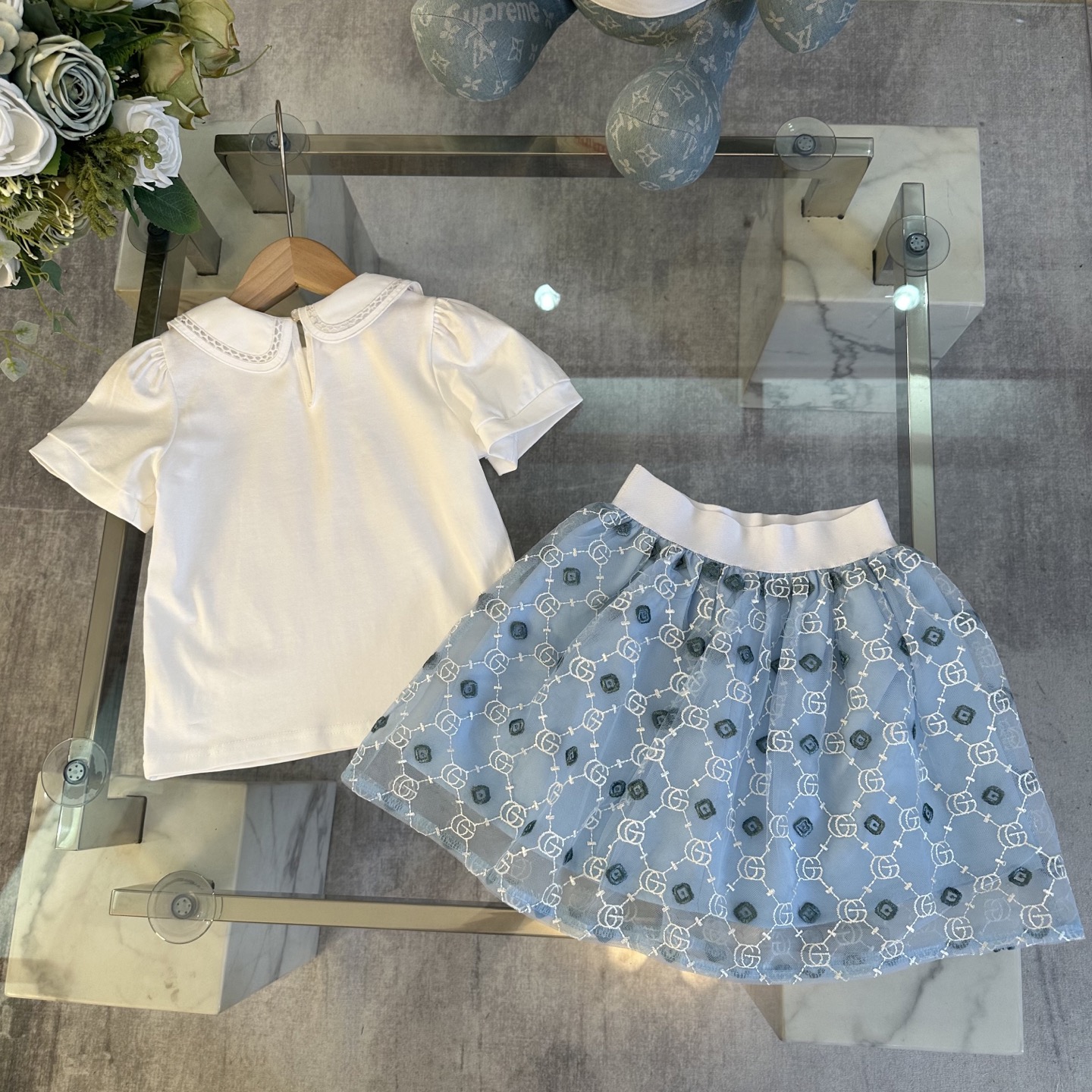 Gucci Gucci, high-end children's wear, girl's skirt, pure cotton blouse gauze skirt collocation, upper body comfortable, good-looking, code number: 90/100/110/120/130/140/150 cm