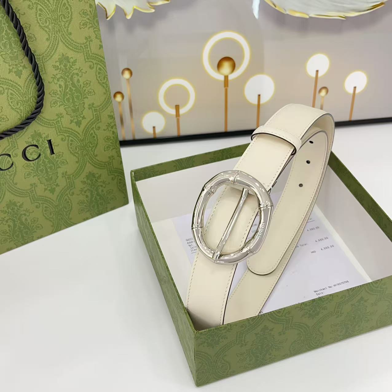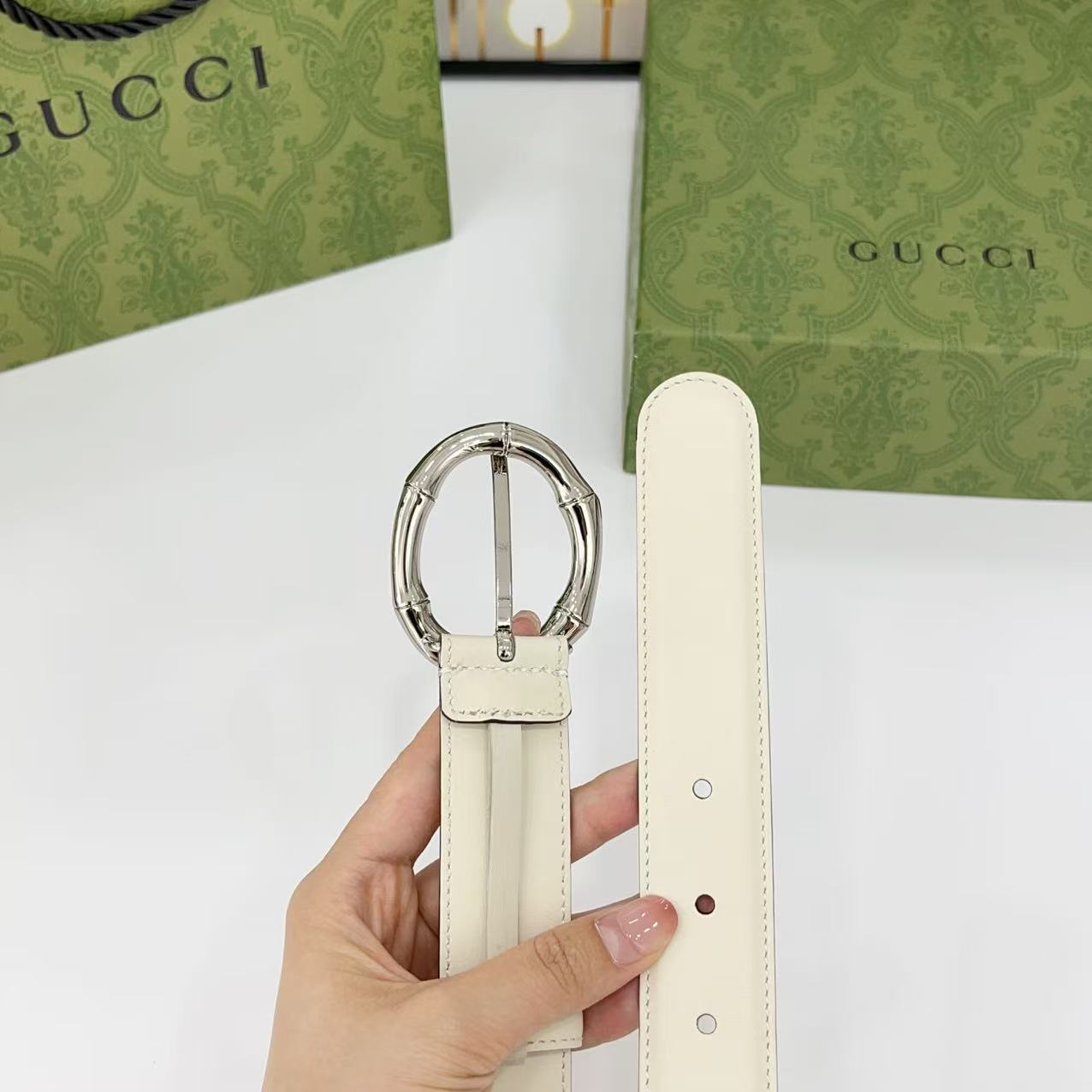 Gucci women's new bamboo buckle with double-sided cowhide and copper buckle, 3.0 cm wide Yards: 75 80 85 90 95 100 105 euros