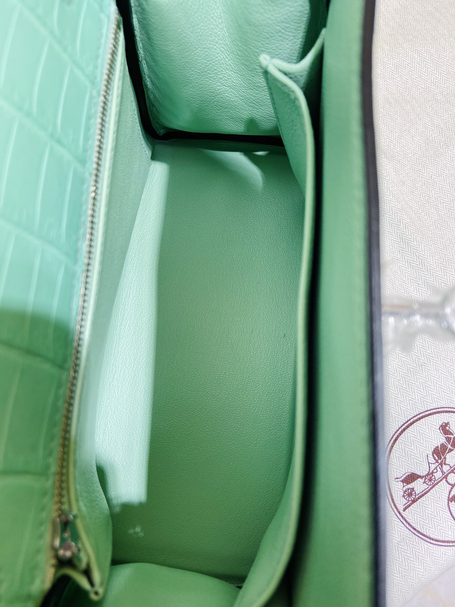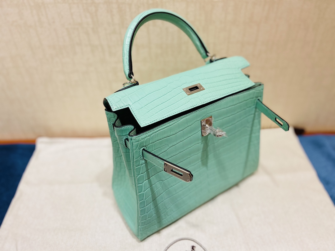 Kelly 25cm Silver button (Gold) Crocodile ?? Niloticus 6U Mint green vert deau Top handmade