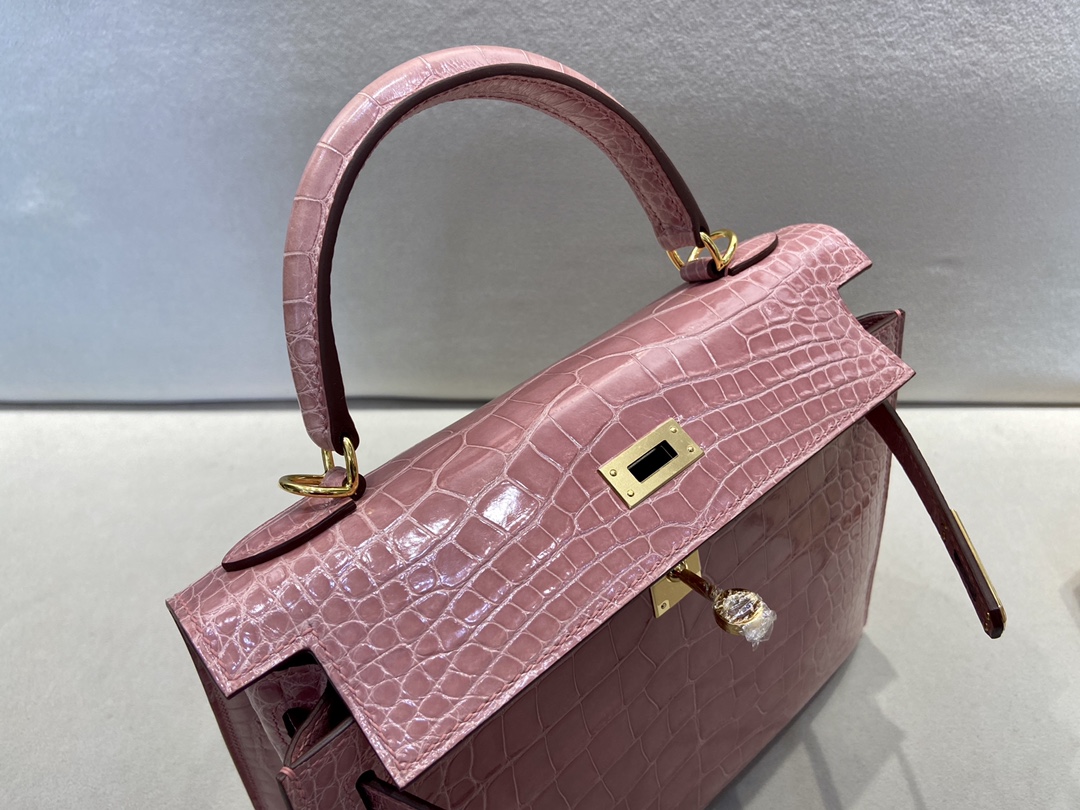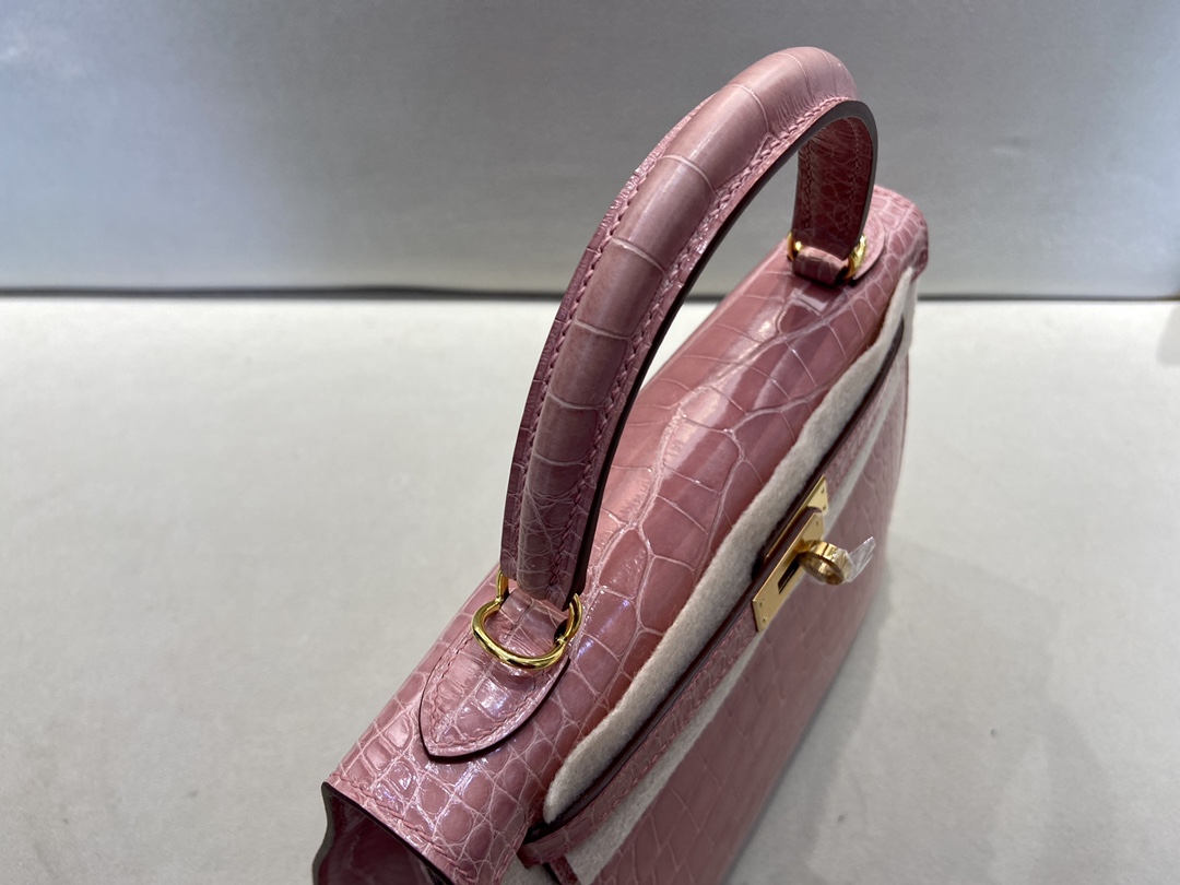 Kelly25cm Gold Alligator ?? American ALLIGATOR Indian Pink rose indienne top HANDMADE Stock #46960