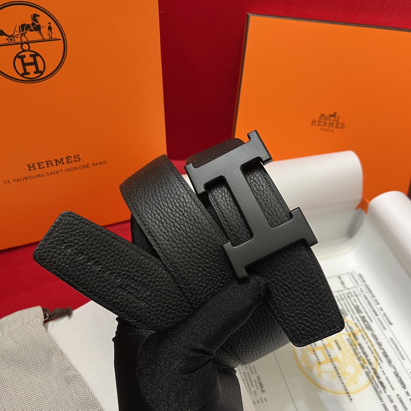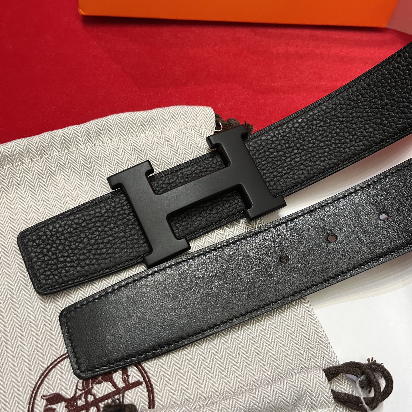 The Hermes men's belt is available on both sides with a width of 38mm. It is set off by the original Italian togo lychee, with an imported white core base box leather. The exquisite and classic H black buckle is made