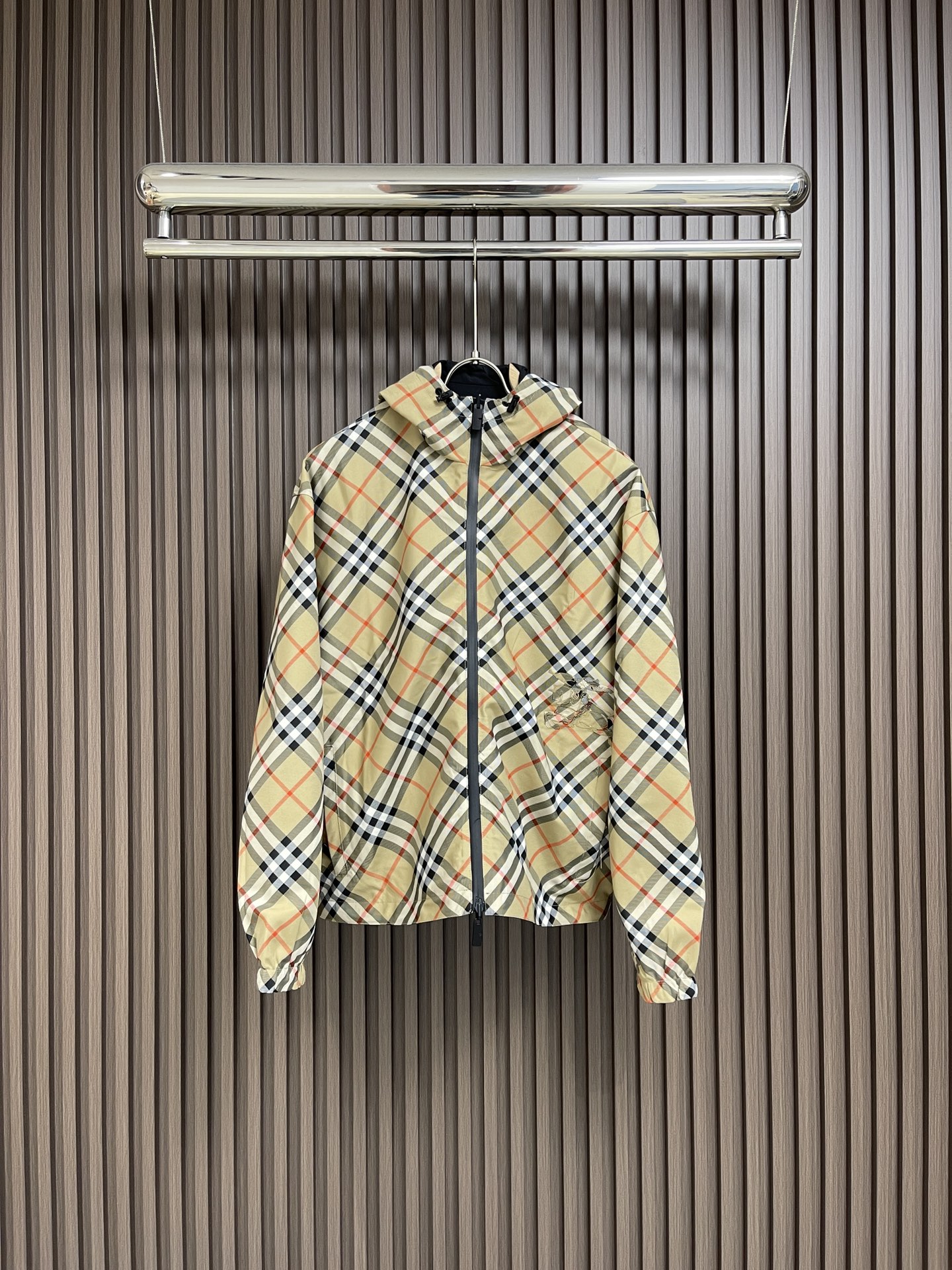 ????Burberry 's new 2024ss light twill coat, paired with a drawstring hood, presents a casual look. This double-sided two-wear style features a burberry check pattern on one side and a solid color design with a decal of the equestrian knight's emblem on the other. From burberry's classic collection, it interprets the essential wardrobe styles with a distinct brand style. Sizes: M ~ XXXL