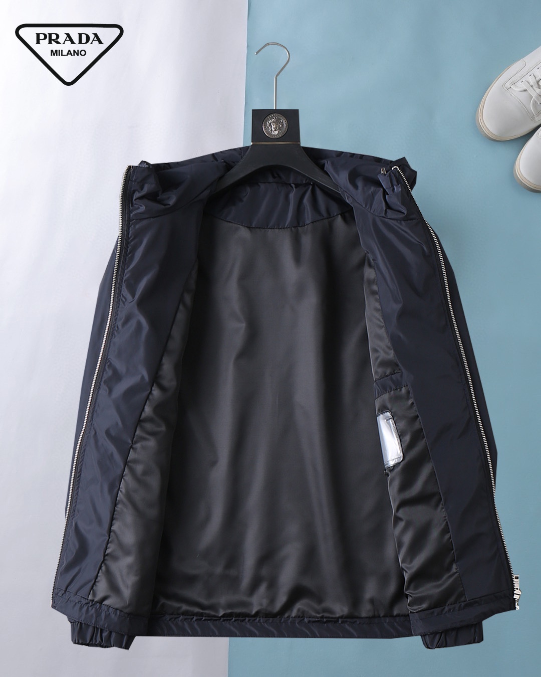 Prada (High-end Quality) Spring 2025 New Fashion Casual hooded Jacket, imported original technological fabric, comfortable and breathable when worn, exquisite handcrafted logo on the chest, unique European fashion style design, digital positioning printing process on the back, highlighting the personality of young people, original hardware accessories, extremely high grade, looking very cool when worn! Please report your height and weight when placing an order for M-3XL!