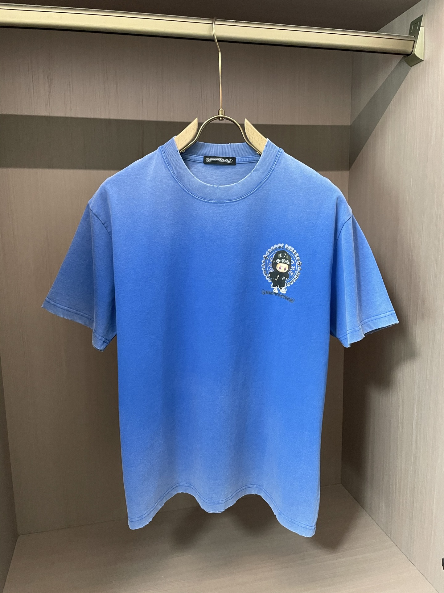 CHROME HEARTS has a new trick up its sleeves ? blue vintage T absolute I was completely outwitted by this blue T-shirt from Kroxin! The aged water-washed blue comes with a retro filter, and the back features the classic elements of Labubu and Krosin colliding, perfectly blending cuteness and hardcore ?? The small label on the chest is so exquisite that it makes you cry. The loose fit hides your flesh and is fashionable. You can go wild with shorts or jeans. The washable process makes you more charming with each wear. Kroxin boys and girls quick-lock ?? ?? ? #ChromeHearts Outfits # Trendy T-shirts # Retro and Aged # New Fashion Favorite Size m-xxl