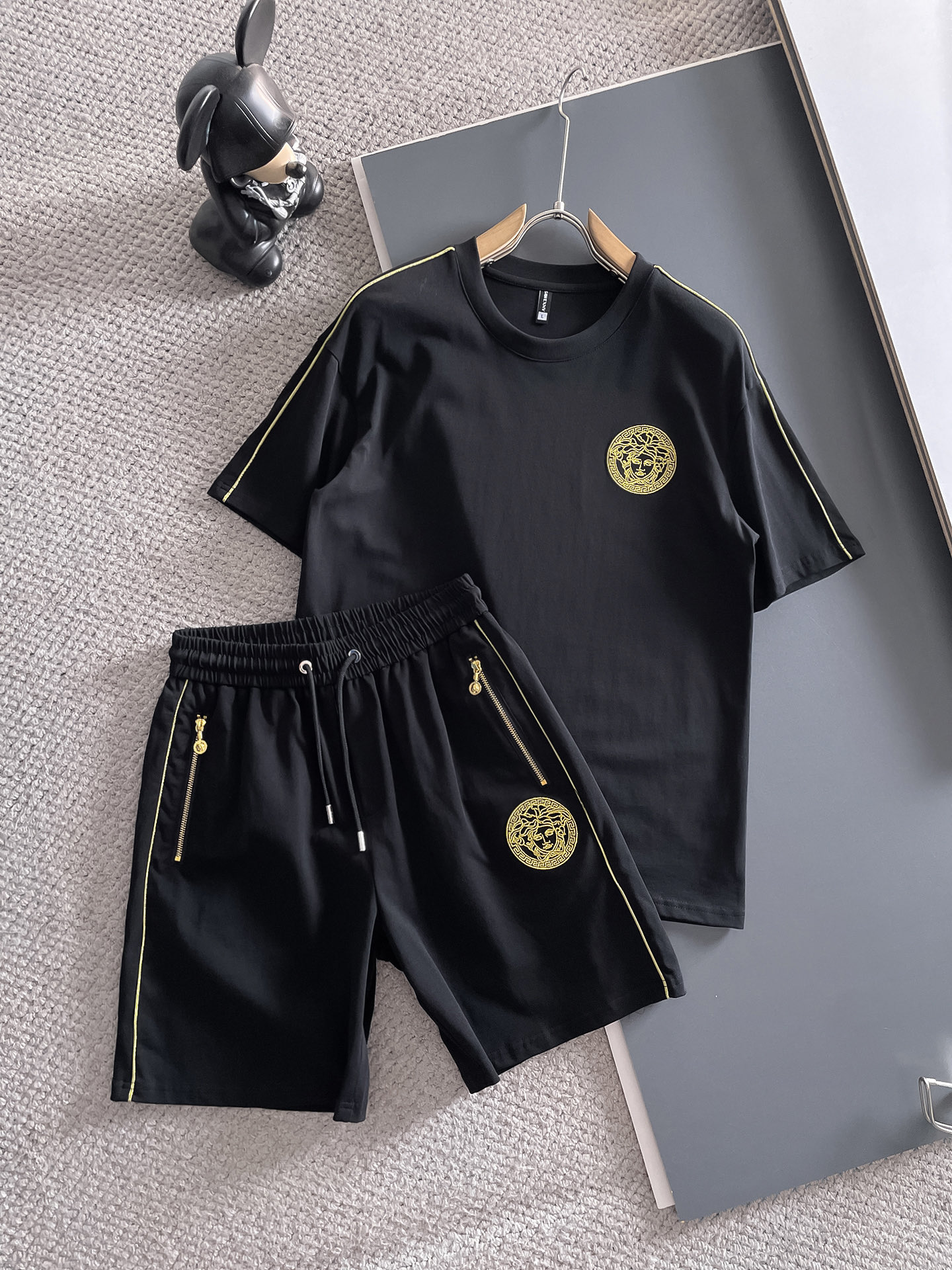 Versace ???? high-end custom 2025 spring/Summer New Collection Launch counter the latest short-sleeved and short-shorts casual set high-end custom design avant-garde fashion! The brand logo emphasizes high-end custom pure cotton fabric with meticulous craftsmanship design. Soft to the touch. Comfortable to wear. Counter level exquisite vehicle lines. The workmanship is exquisite. The wearing effect is incredibly cool! Essential items for stylish men! Size: M-3XL