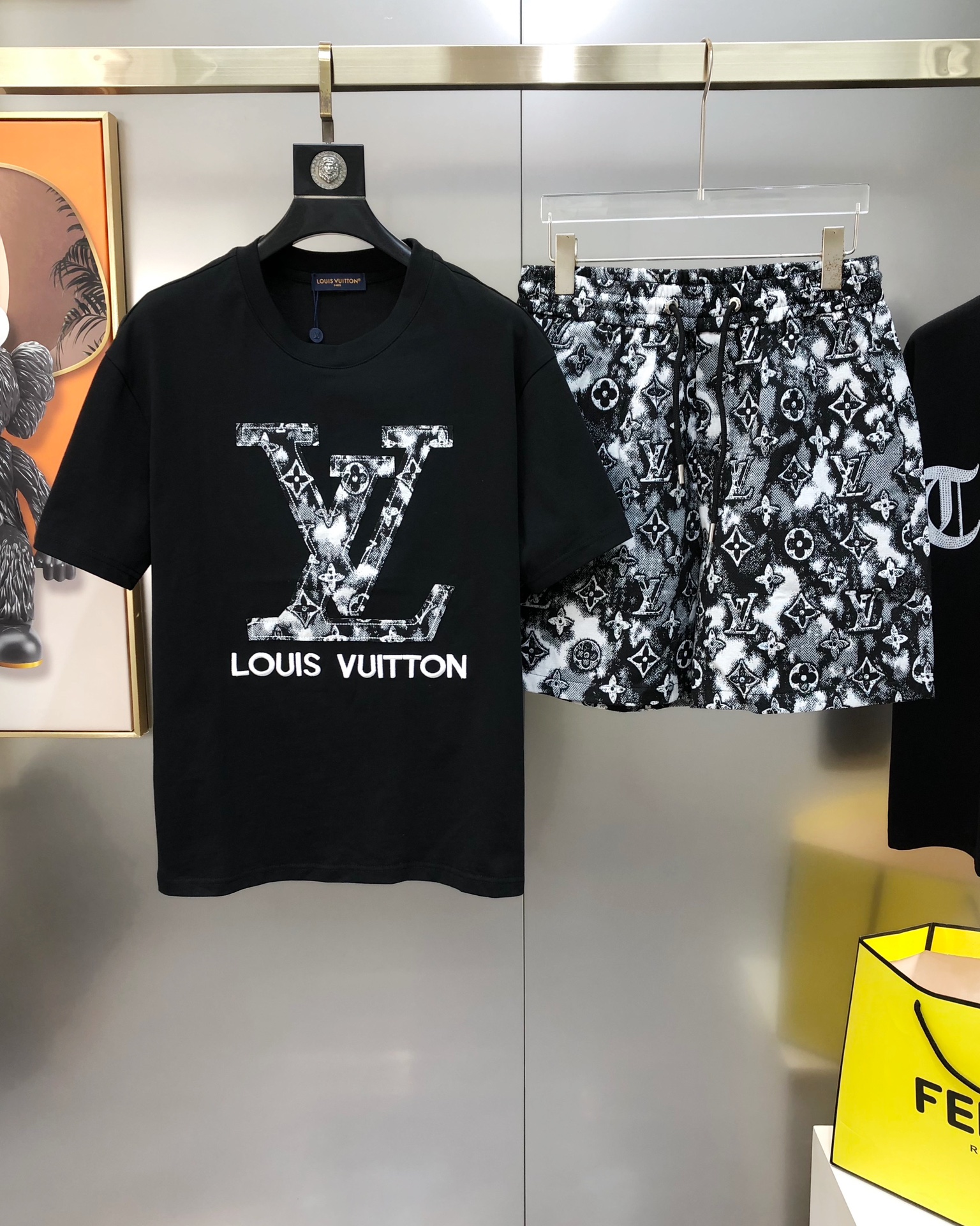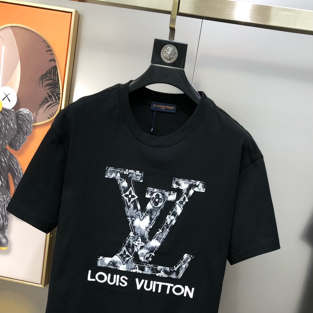 LV Louis Vuitton Spring/Summer 2025 new single men's casual set short sleeves and shorts for sale without disassembly ?? The official website is also selling the big hit ?? ? high version fashionable and versatile ? three-dimensional embroidered letter patchwork logo pattern design made of original imported pure cotton fabric pants jacquard process denim pure cotton fabric soft and delicate hand feel comfortable to wear Original imported engraved hardware accessories for customers, fine workmanship by the OEM factory, smooth lines, exquisite craftsmanship, superb style, very fashionable and cool when worn ?? highly recommended! Counter size: M-3XL (The largest size can wear about 190 pounds. Please report your height and weight when placing an order.) Shipped the next day in black and white