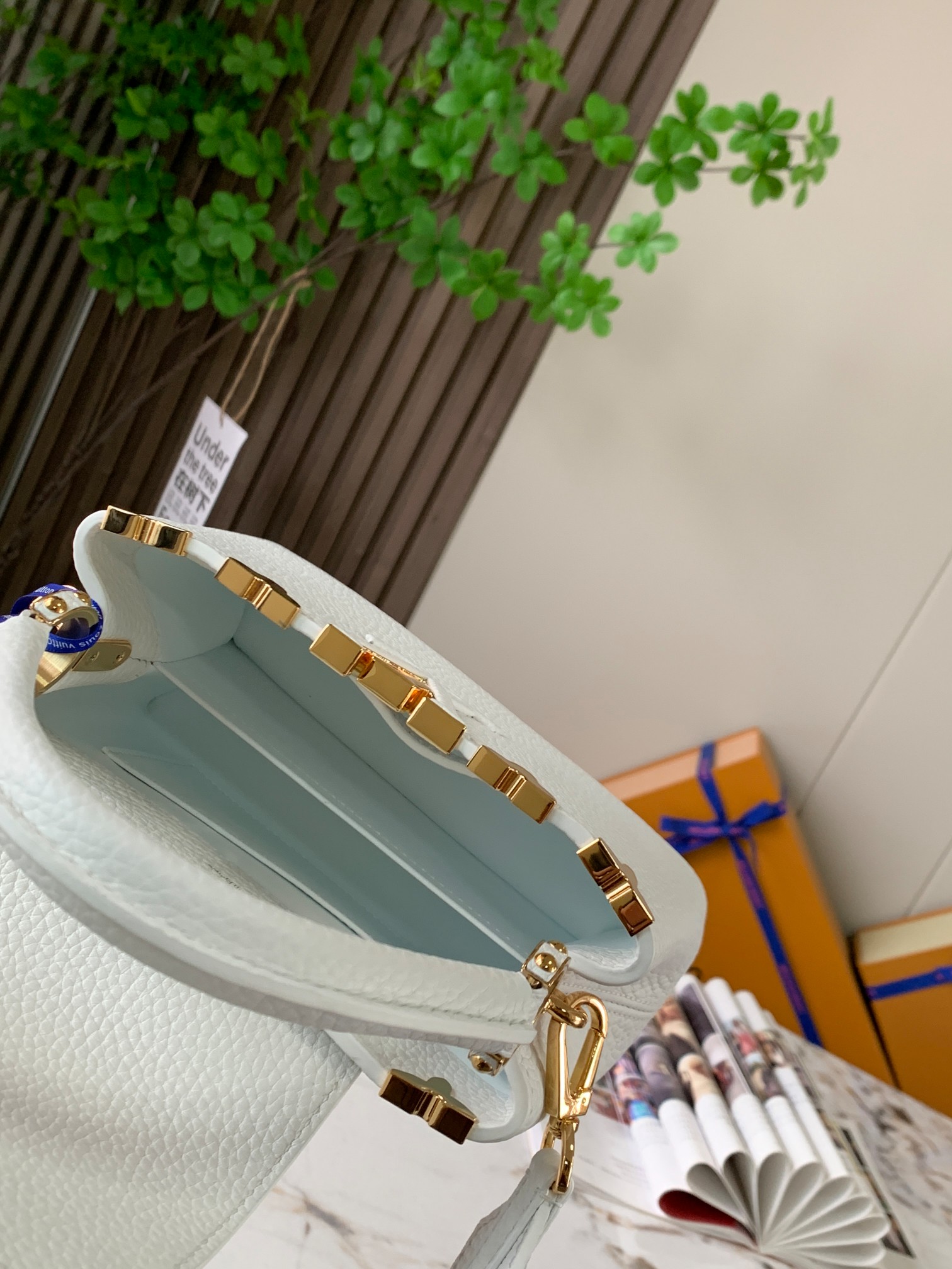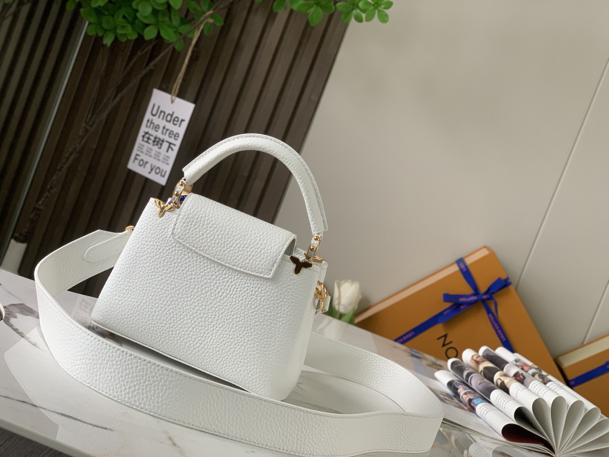 Dynamic CHIP [PREMIUM ORIGINAL FACTORY leather ?? M56669 new version white GOLD buckle] This Capucines mini handbag is made of pure black Taurillon leather, with a golden Monogram floral "crown" on the top, which is hand-polished and decorated with leather. The cute mini size and exquisite decorative floral patterns are soft and charming. The fashionable detachable wide strap and the top leather handle offer multiple carrying options. 21 x 14 x 8 centimeters (Length x height x Width)