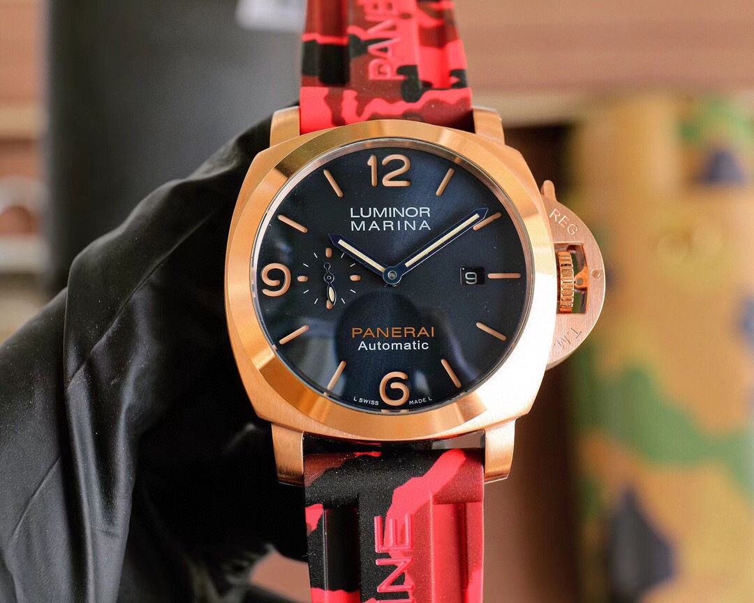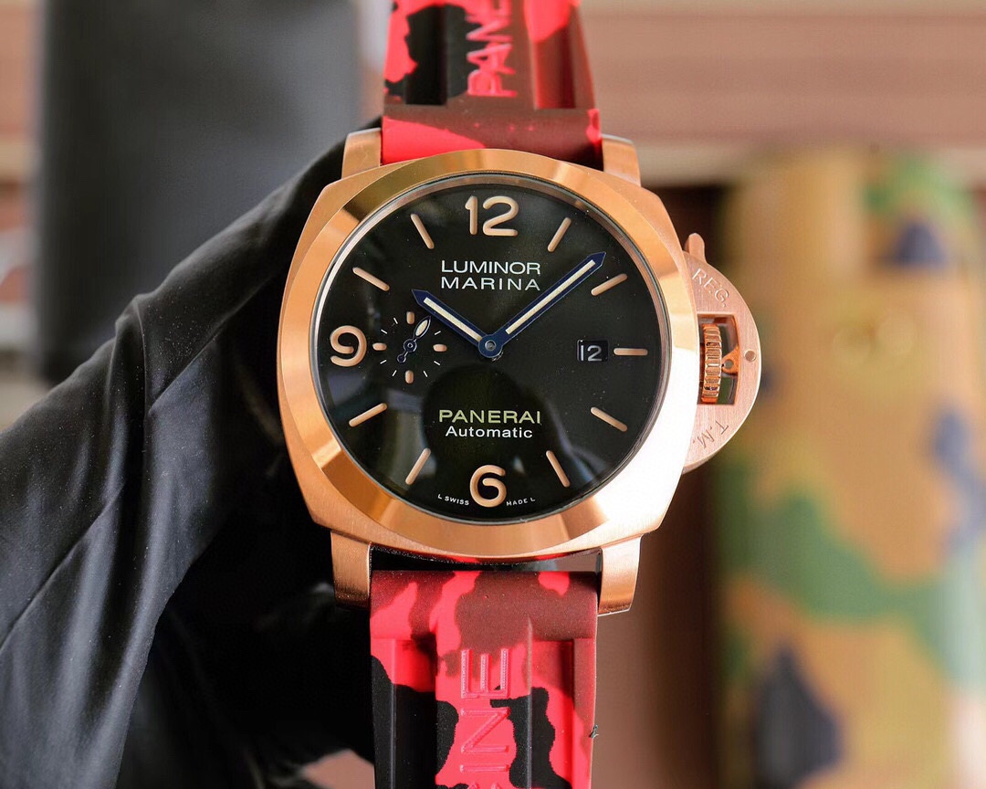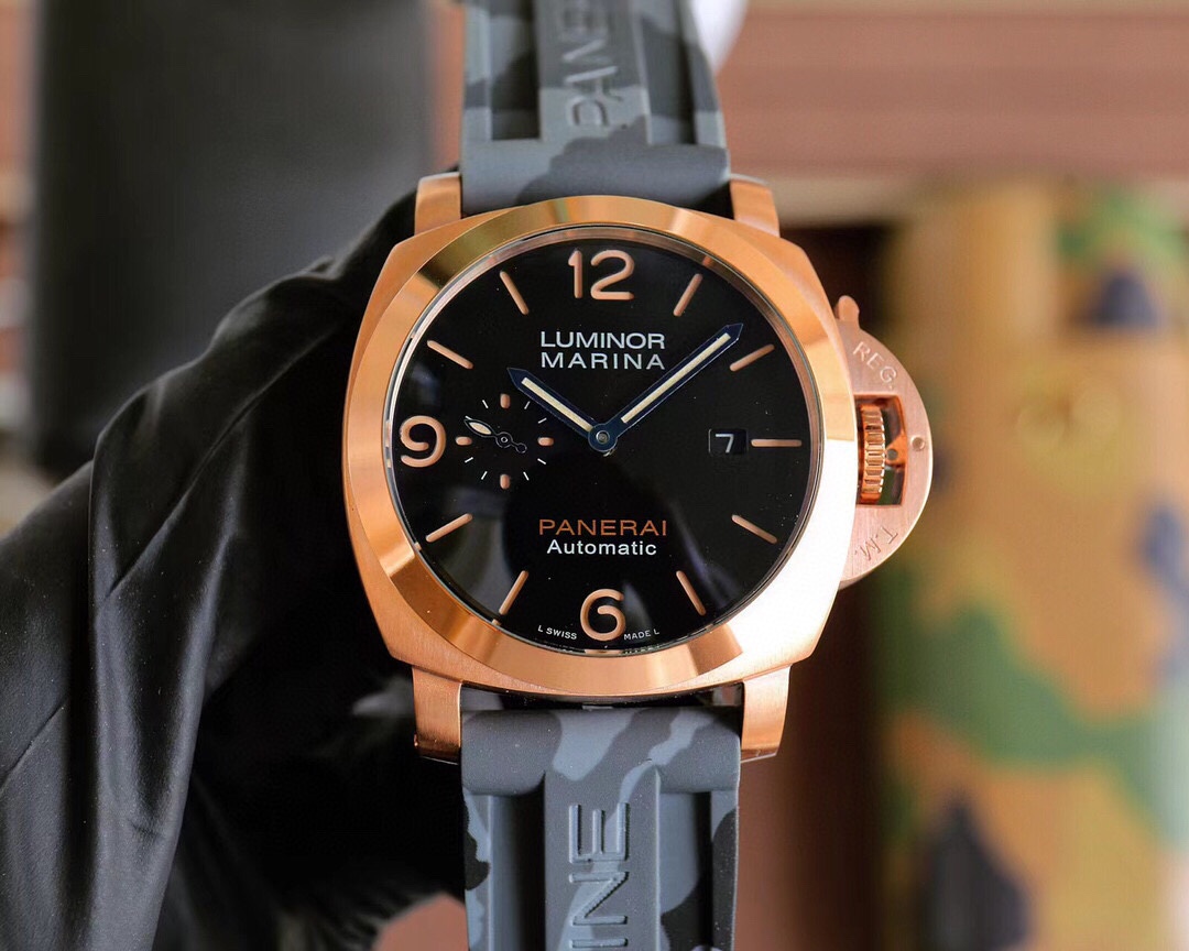 PANERAI arc-shaped coated glass 44mm*16mm camouflage rubber strap with original pin buckle fully automatic mechanical - a watch from a tough guy