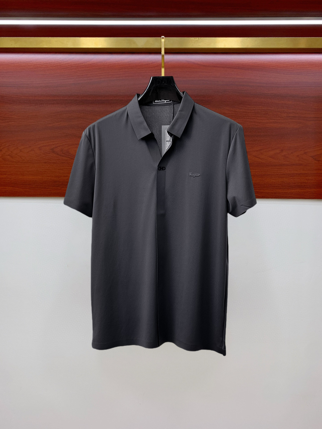 Ferragamo's new high-end product is now available! 2025 Summer New logo Men's Lapel Polo shirt! Classic casual business men's style, the top-notch business men's style in high-end men's wear! Simple, fashionable, grand and elegant, it looks decent and outstanding when worn alone as an inner layer. It's a perfect choice for those who are particular about quality and details. It's understated yet luxurious and full of depth! The fabric surface is evenly and neatly arranged with mesh texture, which has excellent breathability and heat dissipation and sweat-wicking properties. The comfort level when wearing it is completely superior to that of ordinary single-sided sweat fabric! Crafted with top-notch craftsmanship, the LOGO is three-dimensional, clear and full. Whether worn as an inner layer or alone, it is a product in the classic field! Exquisite and unparalleled cutting craftsmanship. Size: M-3XL. Please report your height and weight when placing an order!