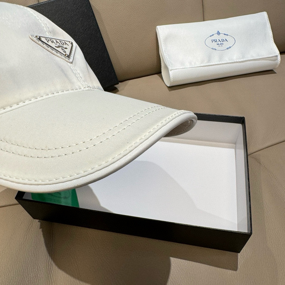 Hot inverted triangle four-color shipment! Paired with a box and cloth bag, Prada classic original single baseball cap, classic inverted triangle metal logo, 1:1 mold custom-made in the counter, original Oxford fabric + top-grain cowhide, light and breathable! The quality is superb. The basic head circumference is 56, and the patch is adjustable.