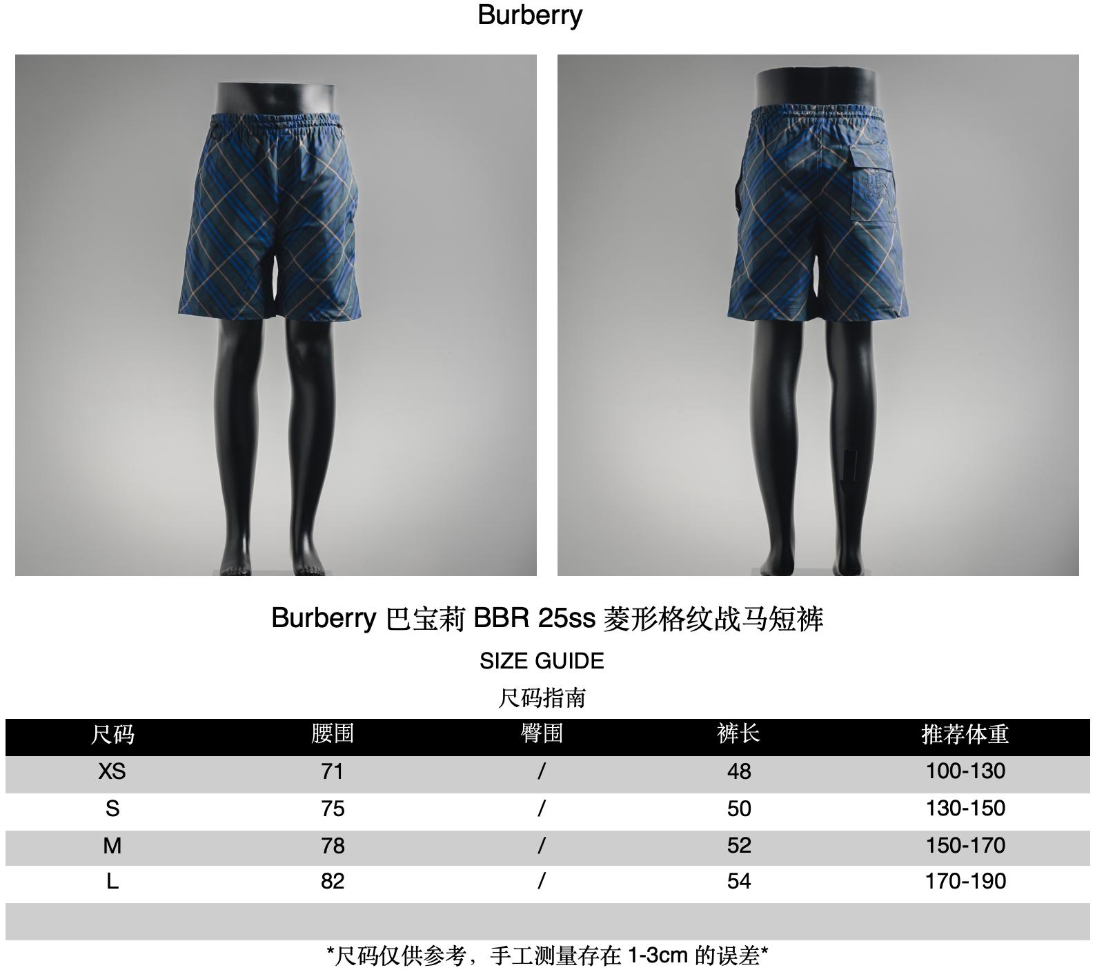 Burberry BBR 25ss Diamond checkered Warhorse Shorts size recommendation