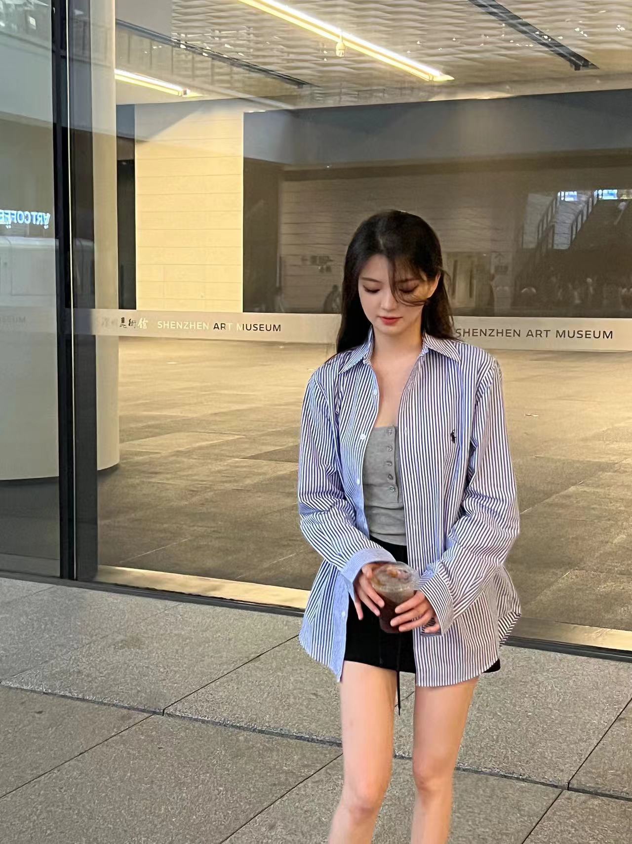 The wearing effect of Ralph Lauren/ Ralph Lauren blue and white striped small label warhorse embroidery casual shirt #