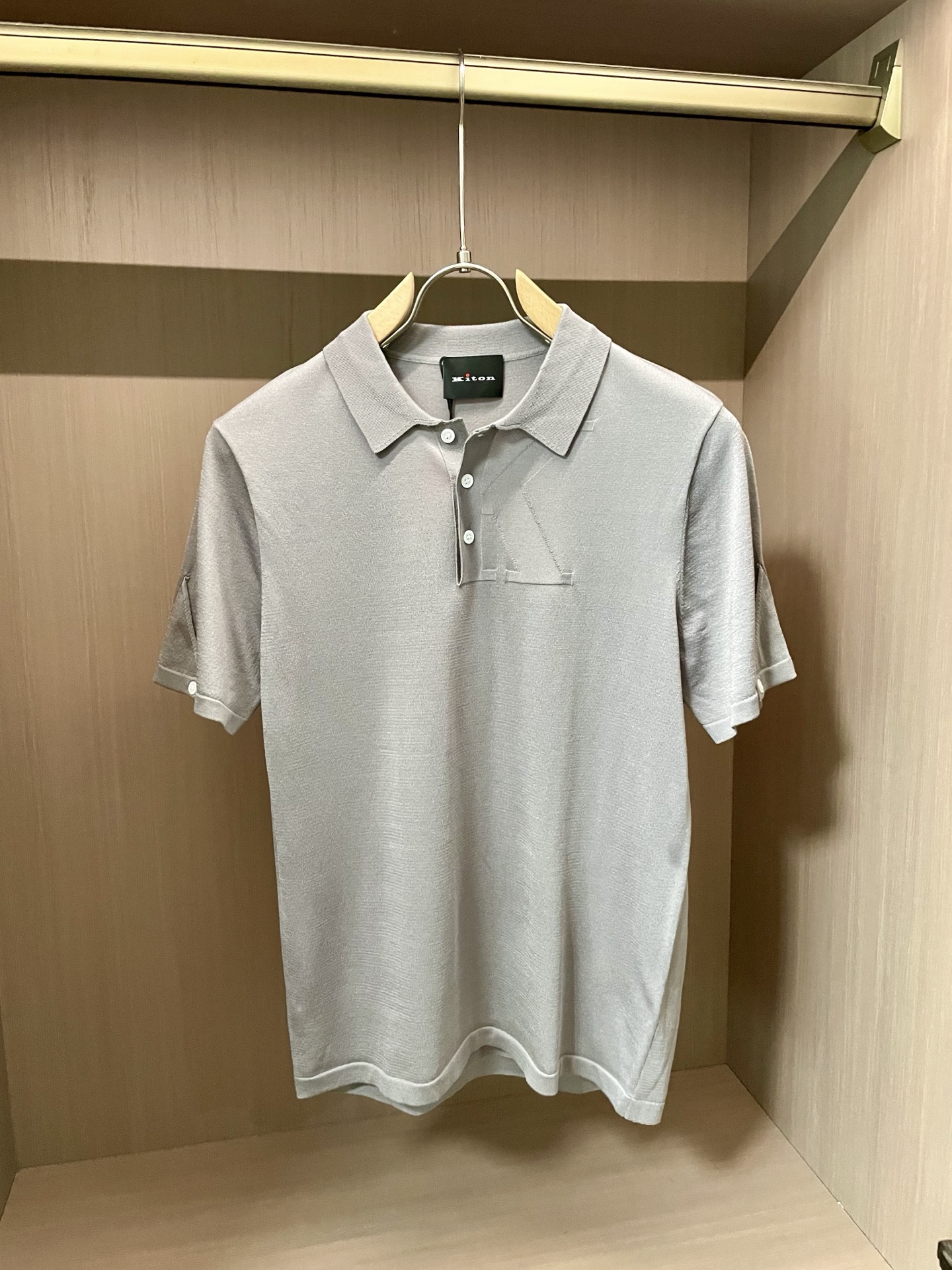 Kiton's latest men's lapel short-sleeved knitted sweater for Spring/Summer 2025 is made of carefully selected knitted cotton fabric. It features 60-count ultra-soft long-staple cotton and 16-stitch fine stitching, with clear texture, fully demonstrating high-end luxury quality. The comfort of wearing it close to the skin is definitely incomparable to that of ordinary T-shirts. Moreover, it is more breathable and cool than ordinary cotton T-shirts, and there will be no feeling of heat when worn until July or August. The traditional POLO collar design is simple and elegant, with a light business style and a strong sense of quality. It looks tasteful and stylish when worn, and is super versatile and never goes out of style. It can be worn alone in summer, simple and elegant, and can be easily handled for both business and casual occasions. It can also be worn as an inner layer in spring and autumn. Wearing a jacket or trench coat over it is a great choice, exuding a trendy and gentlemanly style. This knitted Polo shirt meets the export order standards and the details are handled very well. Once you put it on, you don't want to take it off. ?? fabric: 90% wool, cotton, 10% silk size: M - 3 xl