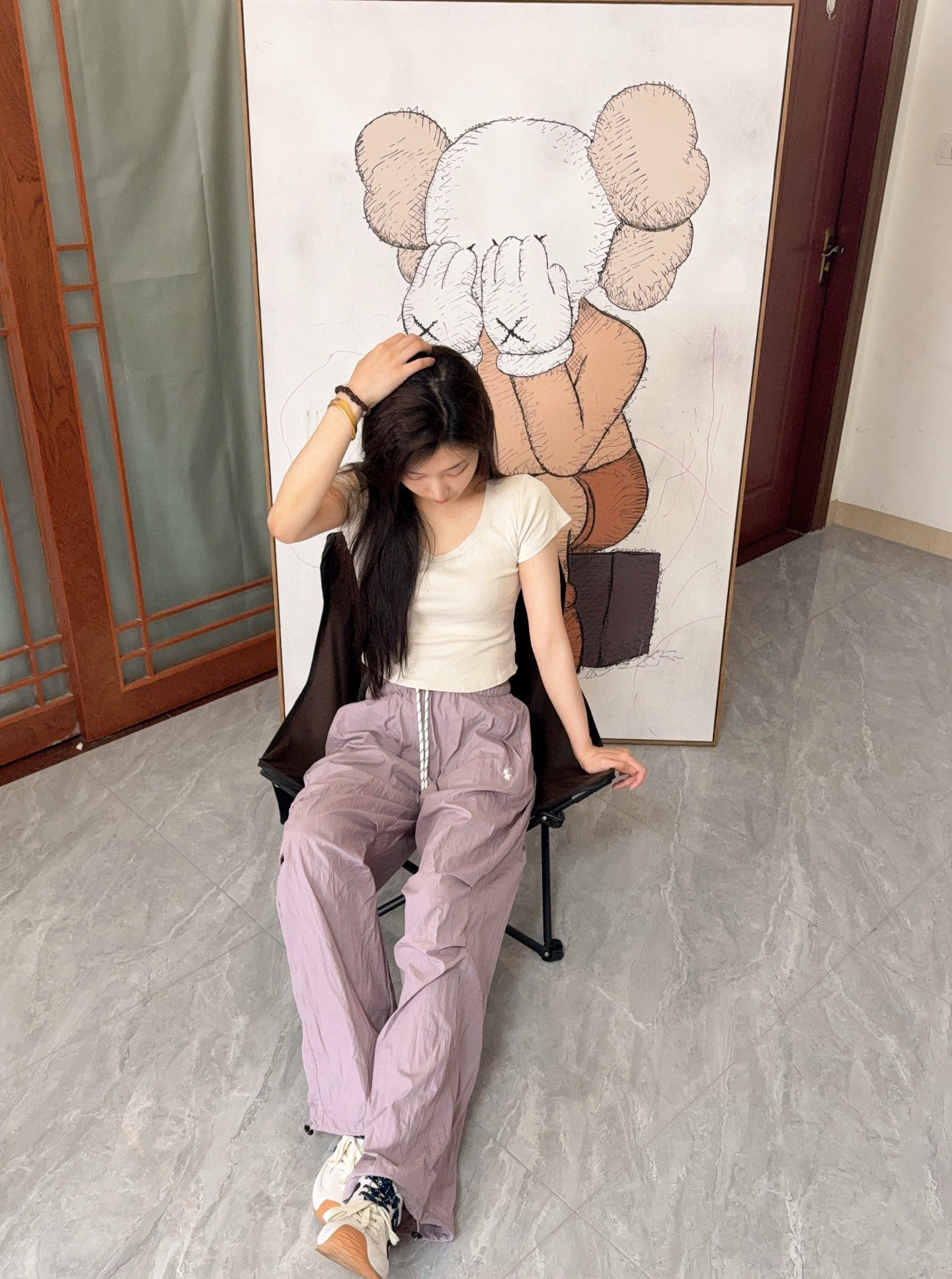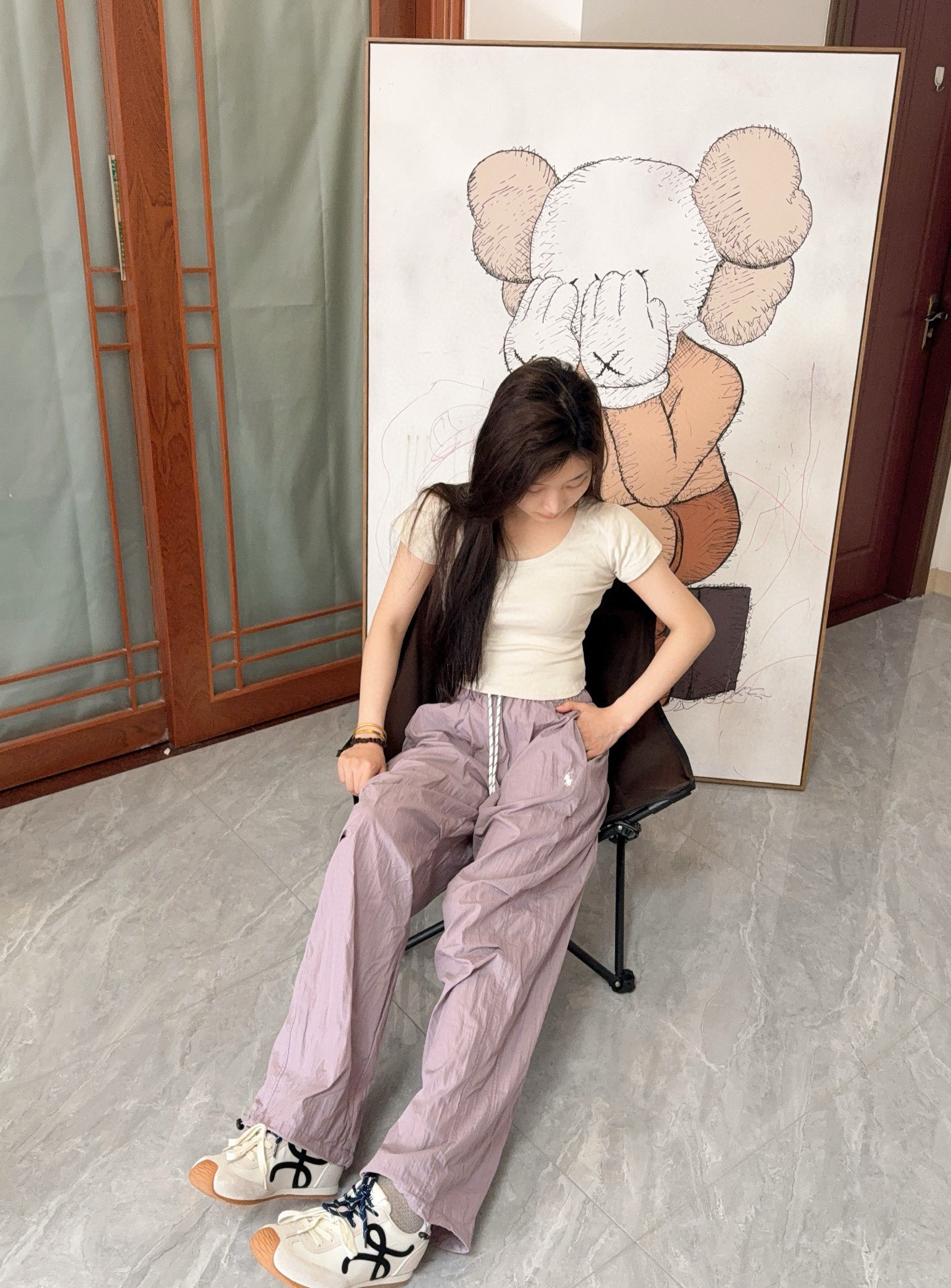 #Ralph Lauren/ Ralph Lauren 24Fw embroidered small label nylon trousers Wearing effect
