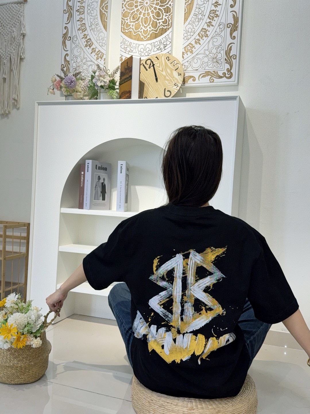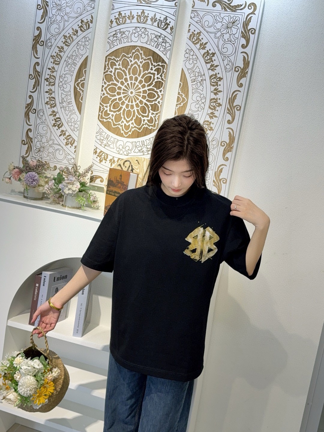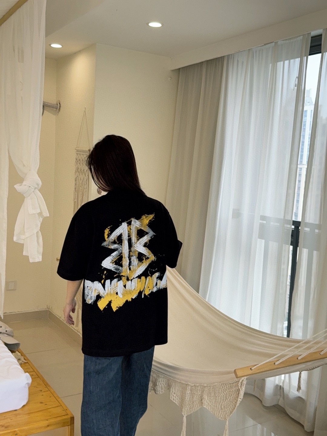 Balenciaga hand-painted double B print short-sleeved shirt look #
