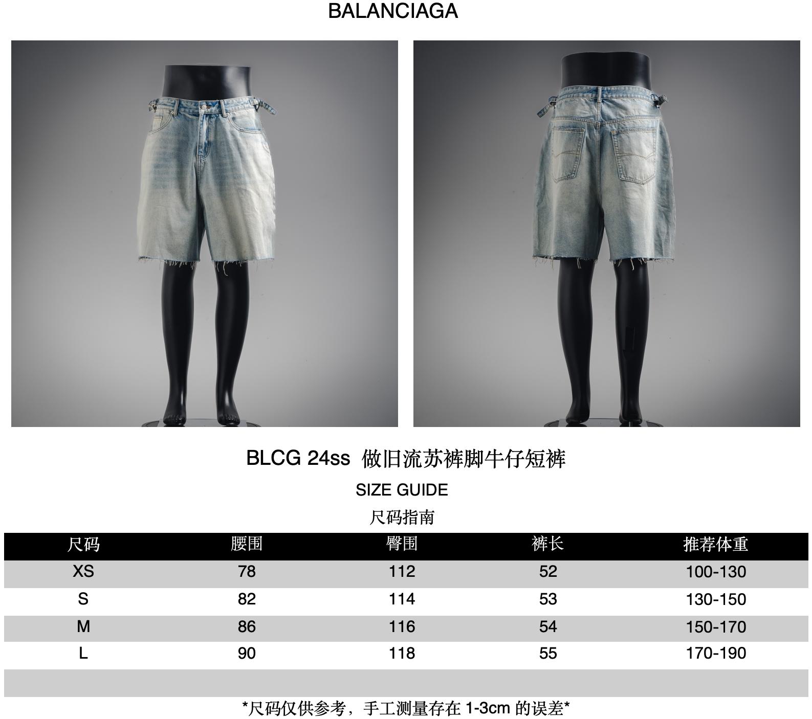 Balenciaga BLCG 24ss distressed fringed pant leg denim shorts size recommendation