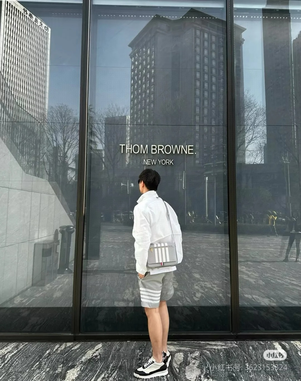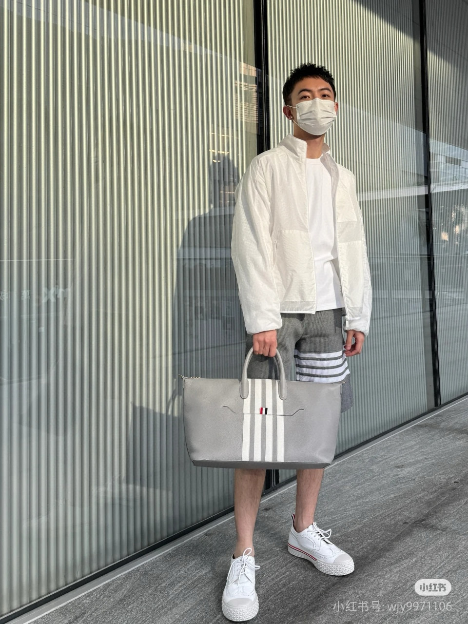 #Thom Browne/ Tom Brown 25ss Line stand-up collar four-bar sun protection jacket Wearing effect