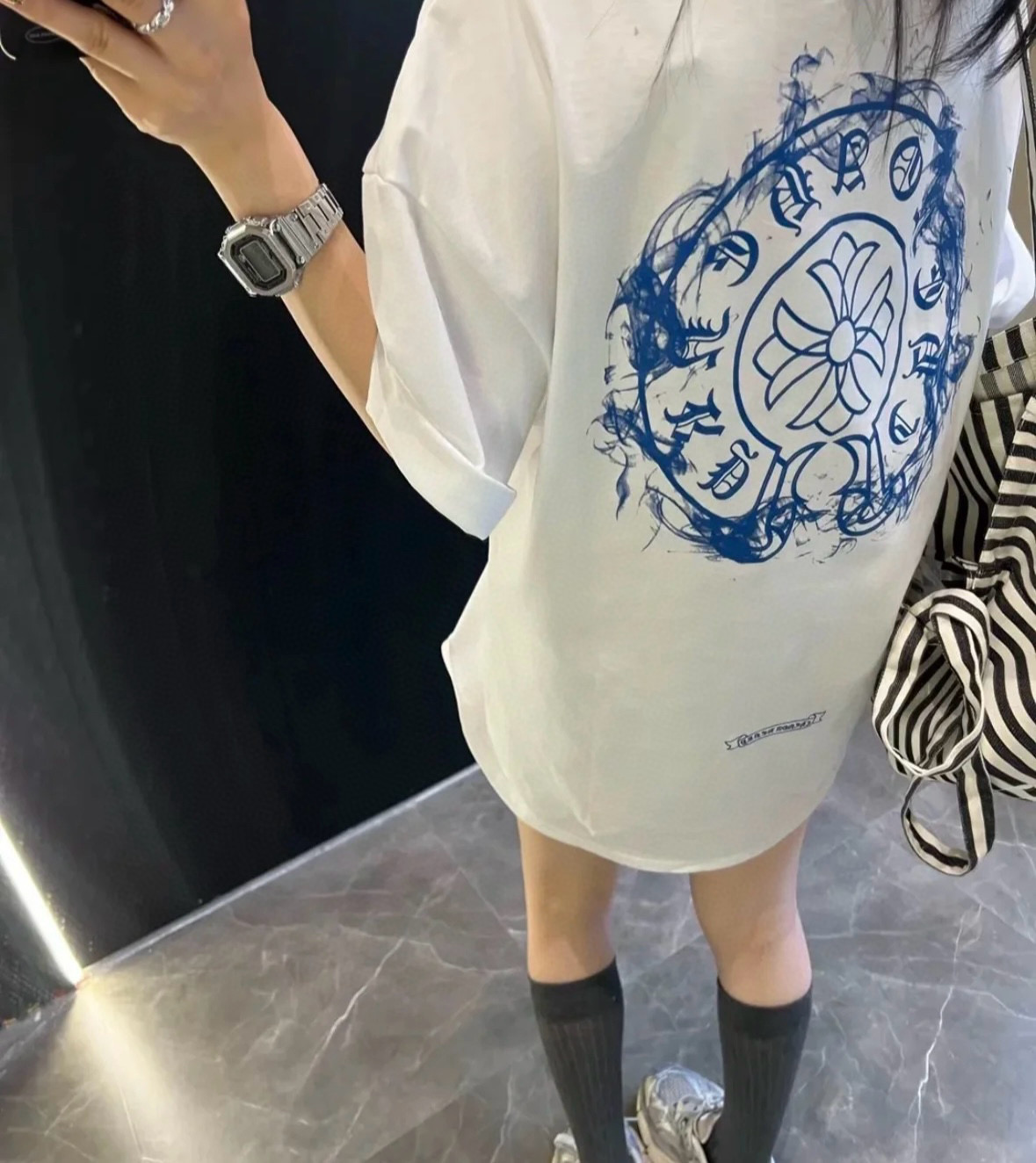 Chrome hearts CH/ Chrome Hearts 25ss logo smoke print logo round neck short-sleeved top set