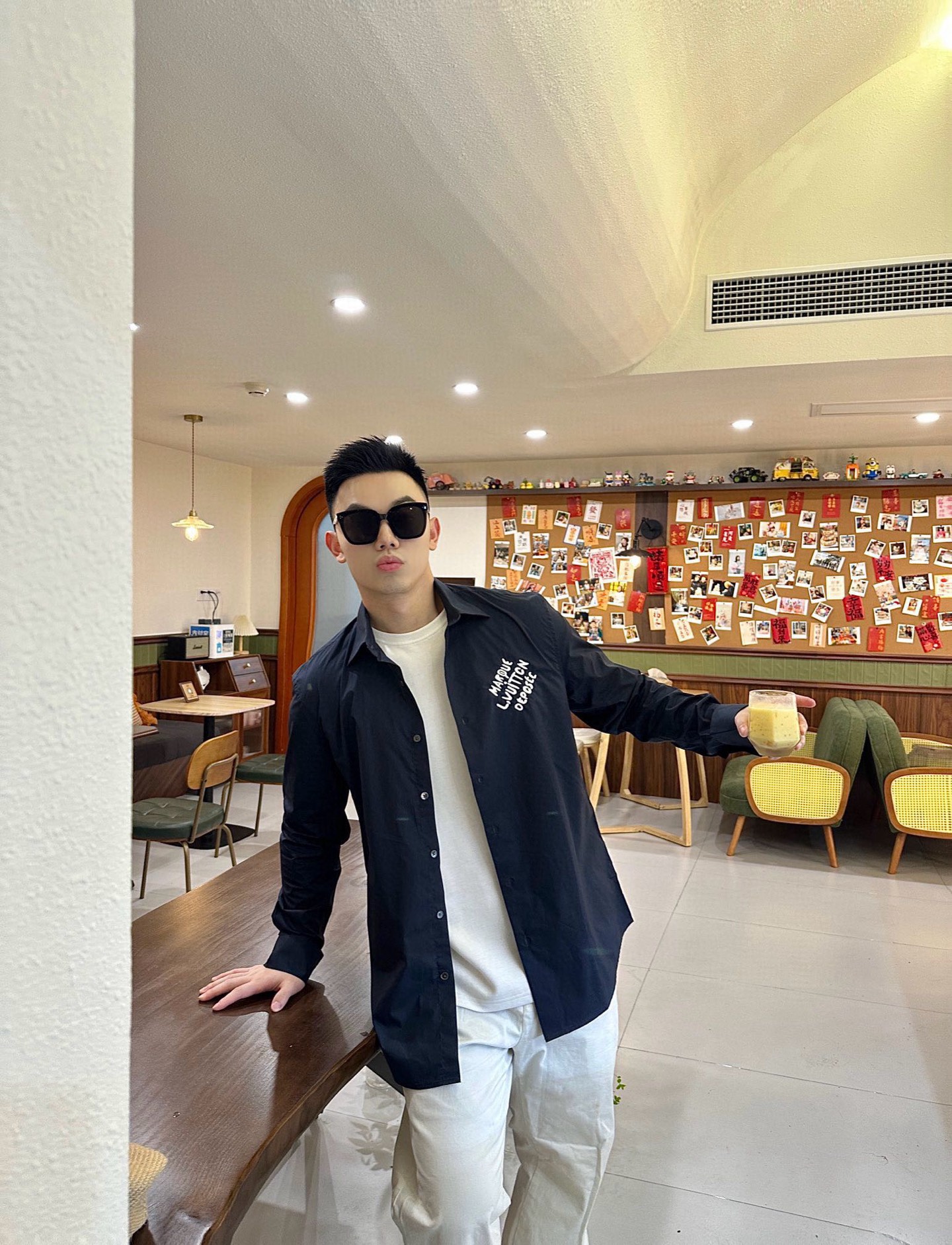Gather on the Louis Vuitton 25ss embroidered letter logo shirt