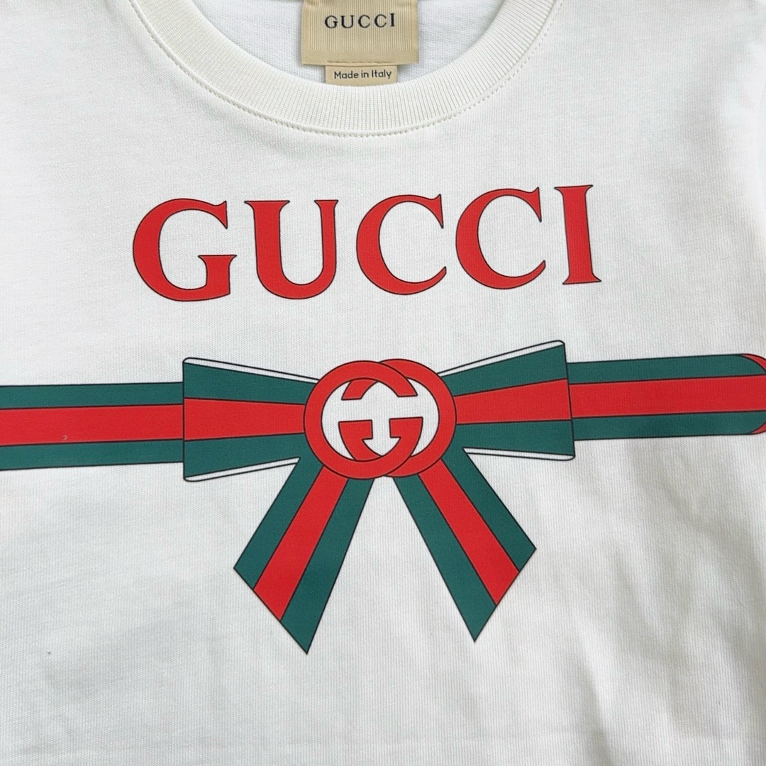 Reservation for 4 days! Gucci Gucci, high-end children's clothes, girls T-shirt, lovely bowknot ?? double G letters printing, cotton fabrics, upper body comfortable, good-looking, code number: 100/110/120/130/140/150 cm