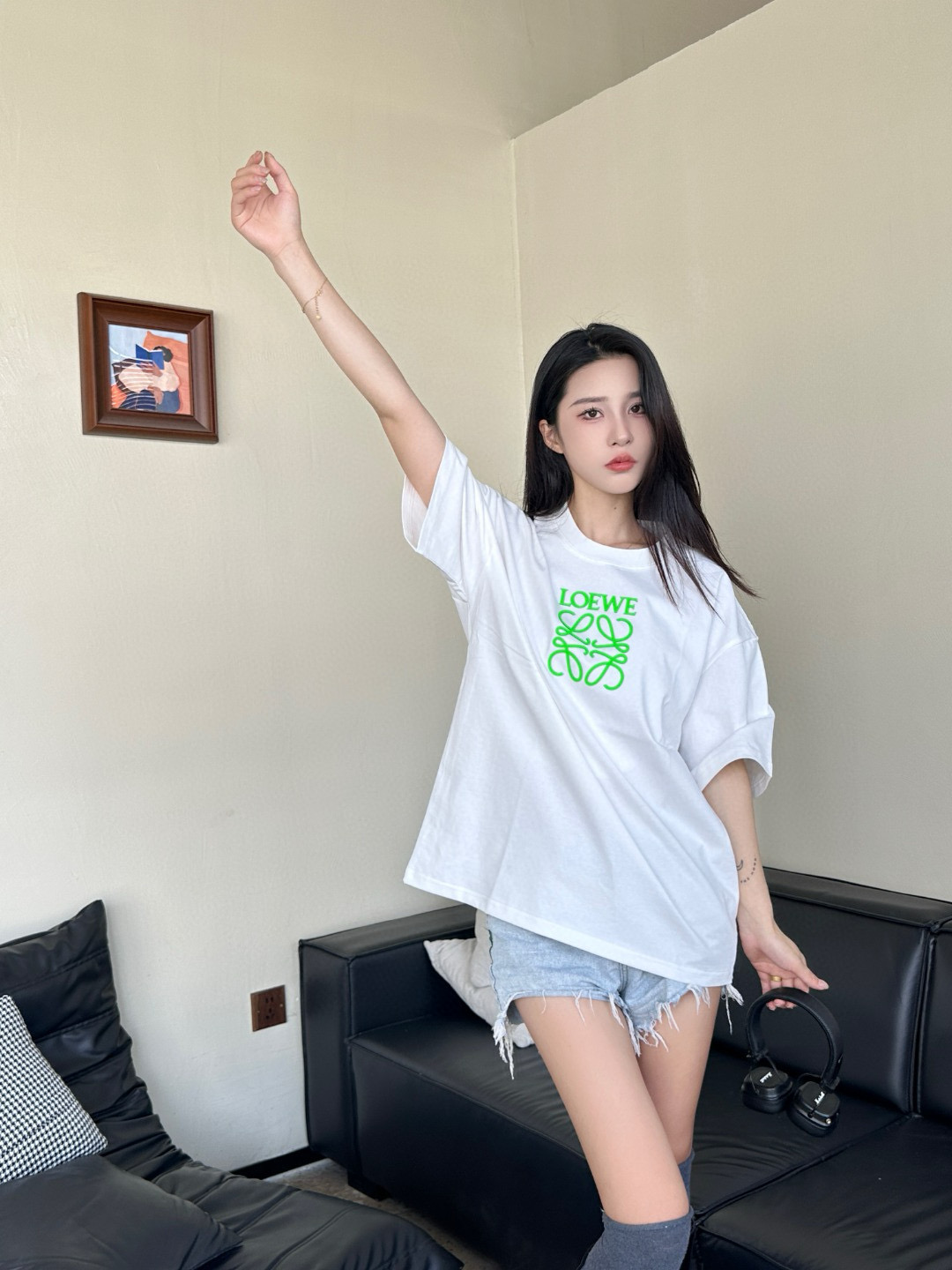 #Loewe/ LOeWE 25ss fluorescent green embossed logo short-sleeved wearing effect