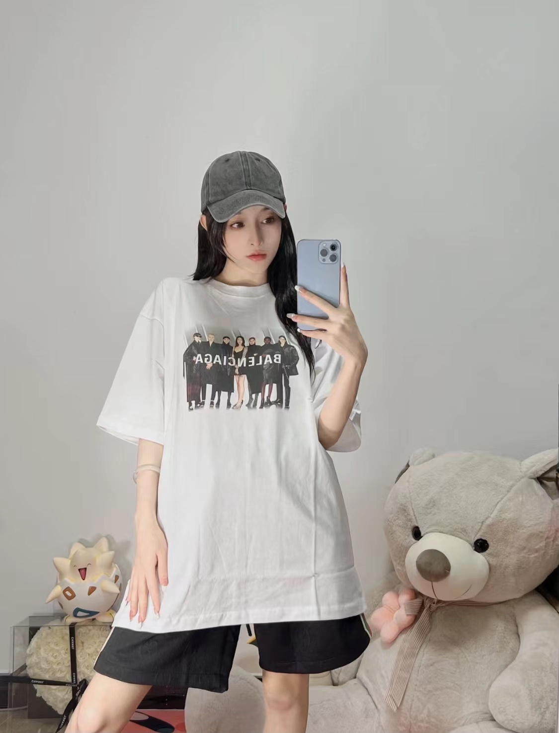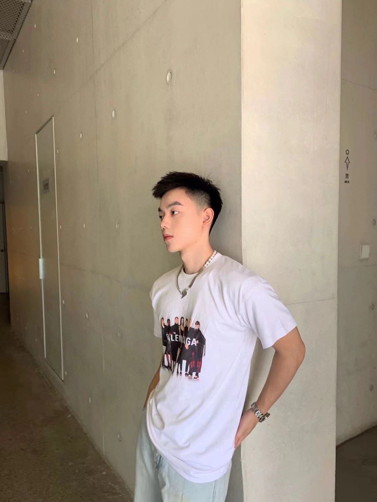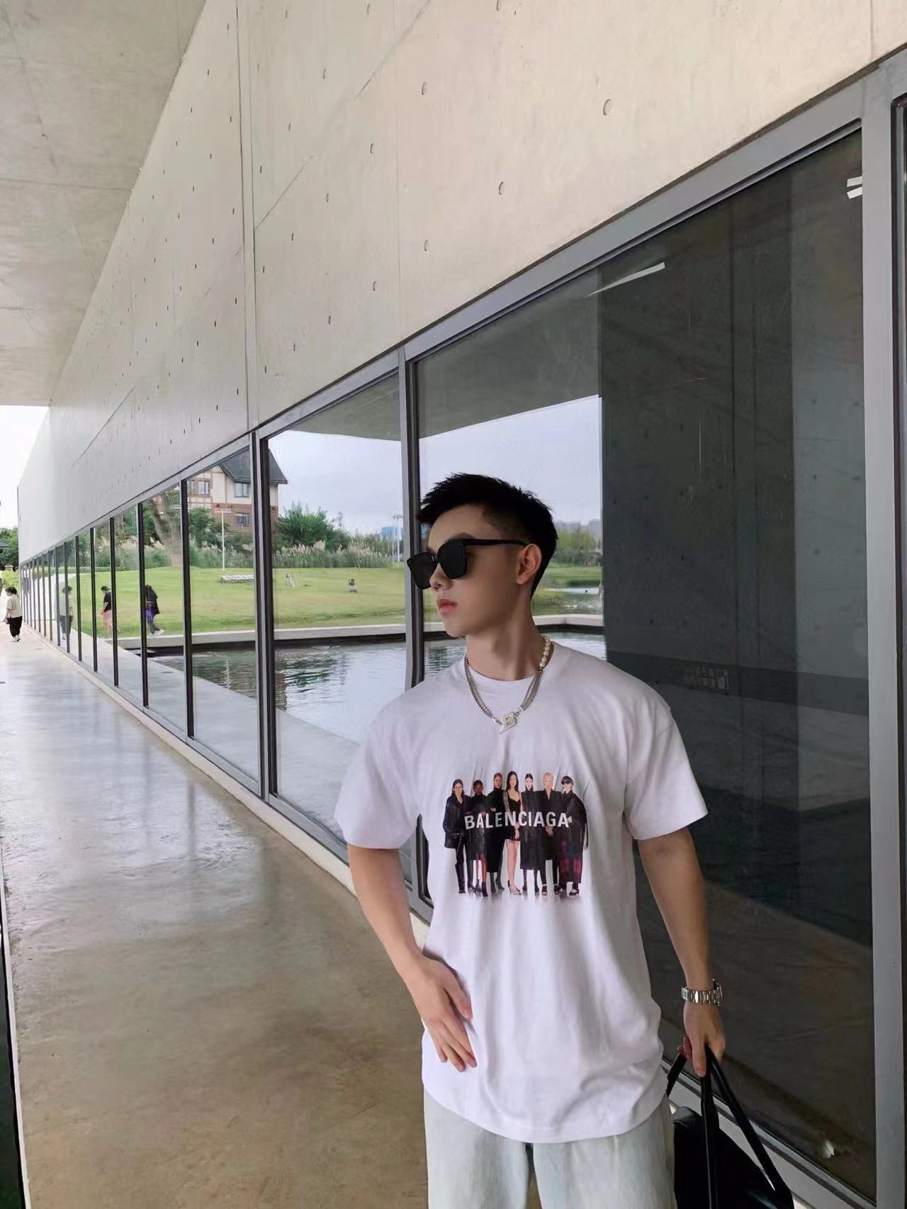 The effect of wearing Balenciaga All-Star portrait printed short-sleeved shirt