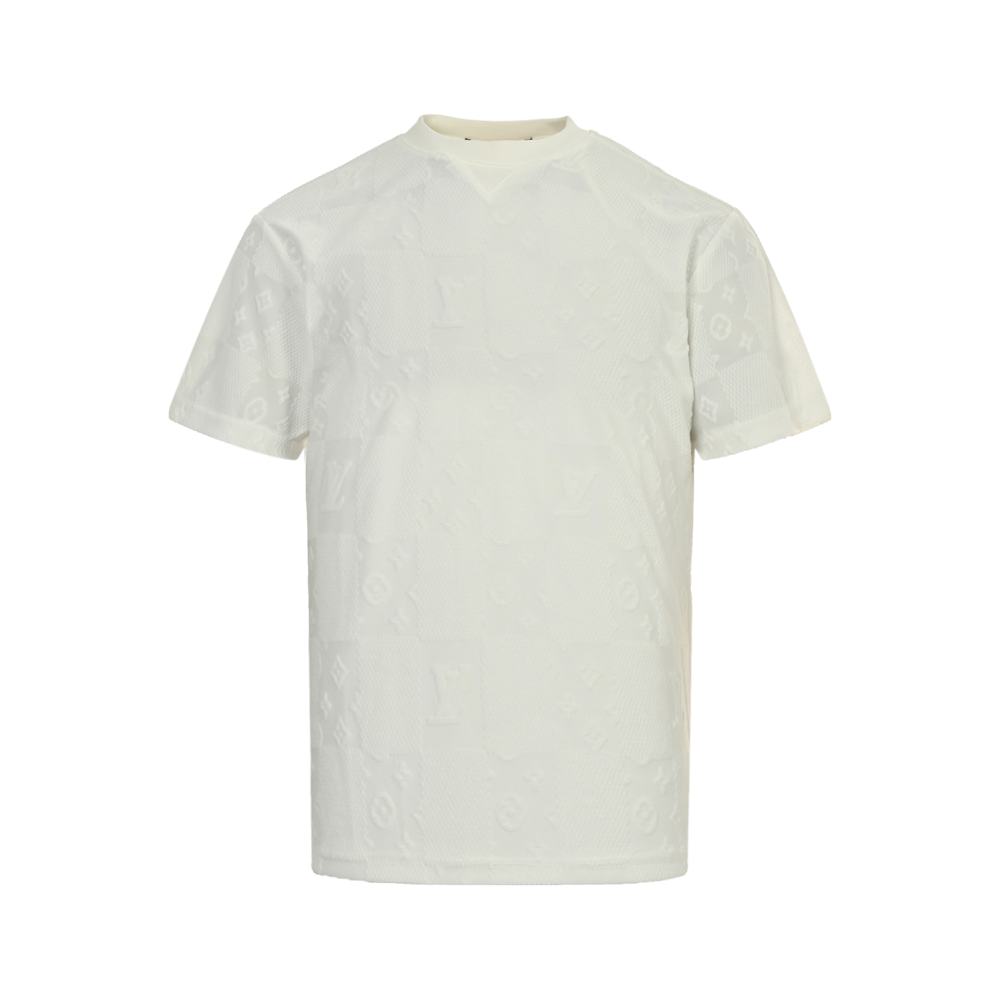 Louis Vuitton/ Louis Vuitton 25ss Dark patterned Monogram Logo checkered jacquard short sleeve Full Damier checkered jacquard 260g, 32s double yarn 1*1 thread, fabric thread is fixed dyeing in the same cylinder. The jacquard fabric woven by imported jacquard machines uses various jacquard structures to make the yarn present a checkered pattern. The fabric features a unique texture and visual effect, and has excellent breathability and heat dissipation and sweat-wicking properties. The chest is decorated with simple letter patterns, and the size and spacing of the letters are consistent. The embroidery is made of linen thread combined with densification treatment, and the embroidery body has a subtle matte visual texture. The effect is three-dimensional and full, with clear and smooth lines, presenting a three-dimensional texture effect. Full-piece positioning and matching sewing Ensure that the pattern or texture of each cut piece can perfectly match the others. Through flower cutting, The ready-to-wear checkerboard pattern is neatly arranged. Straight cylinder round neck style, standard hanging body style, combined with shoulder-length design The basic solid color is classic and versatile, perfectly matching both inside and outside. Colour: Black, white Size:XS-L