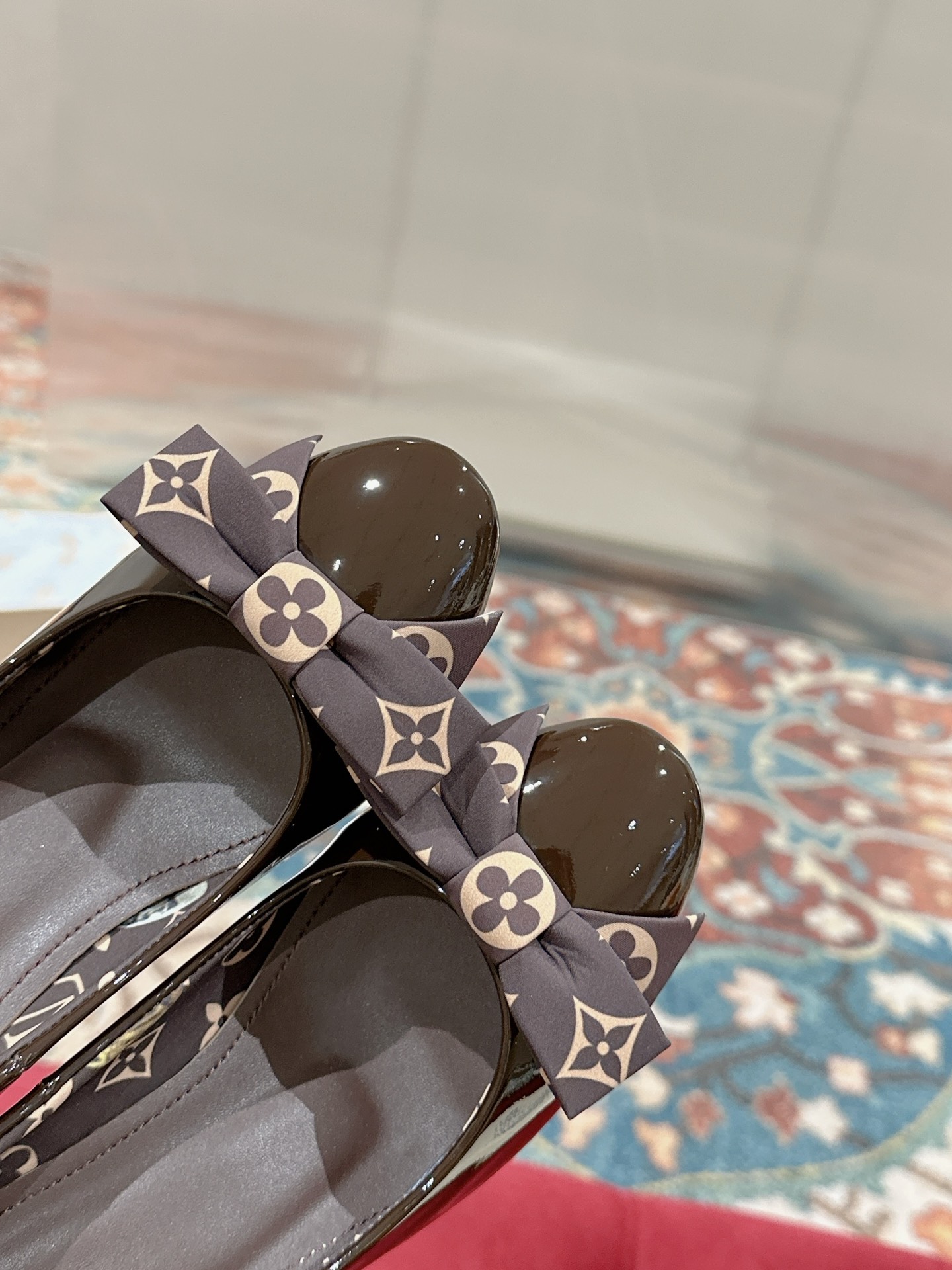 ?? ?? ?? Lv 's new autumn/winter collection features round-toe bow single shoes. The lacquered cowhine exudes a retro charm, and the inner part is adorned with the iconic Logo of LV' s old human head ?? Fabric: Patent leather ?? Inside: in silk ?? Foot: sheepskin ?? Sole: Italian leather sole ?? Size: 35-39 (40 customizable, non-returnable)